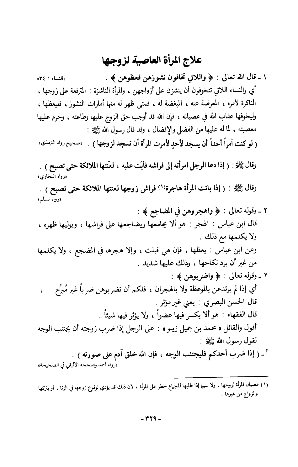 1 - قال الله تعالى: {وَاللَّاتِي تَخَافُونَ نُشُوزَهُنَّ فَعِظُوهُنَّ} [النساء: 34]