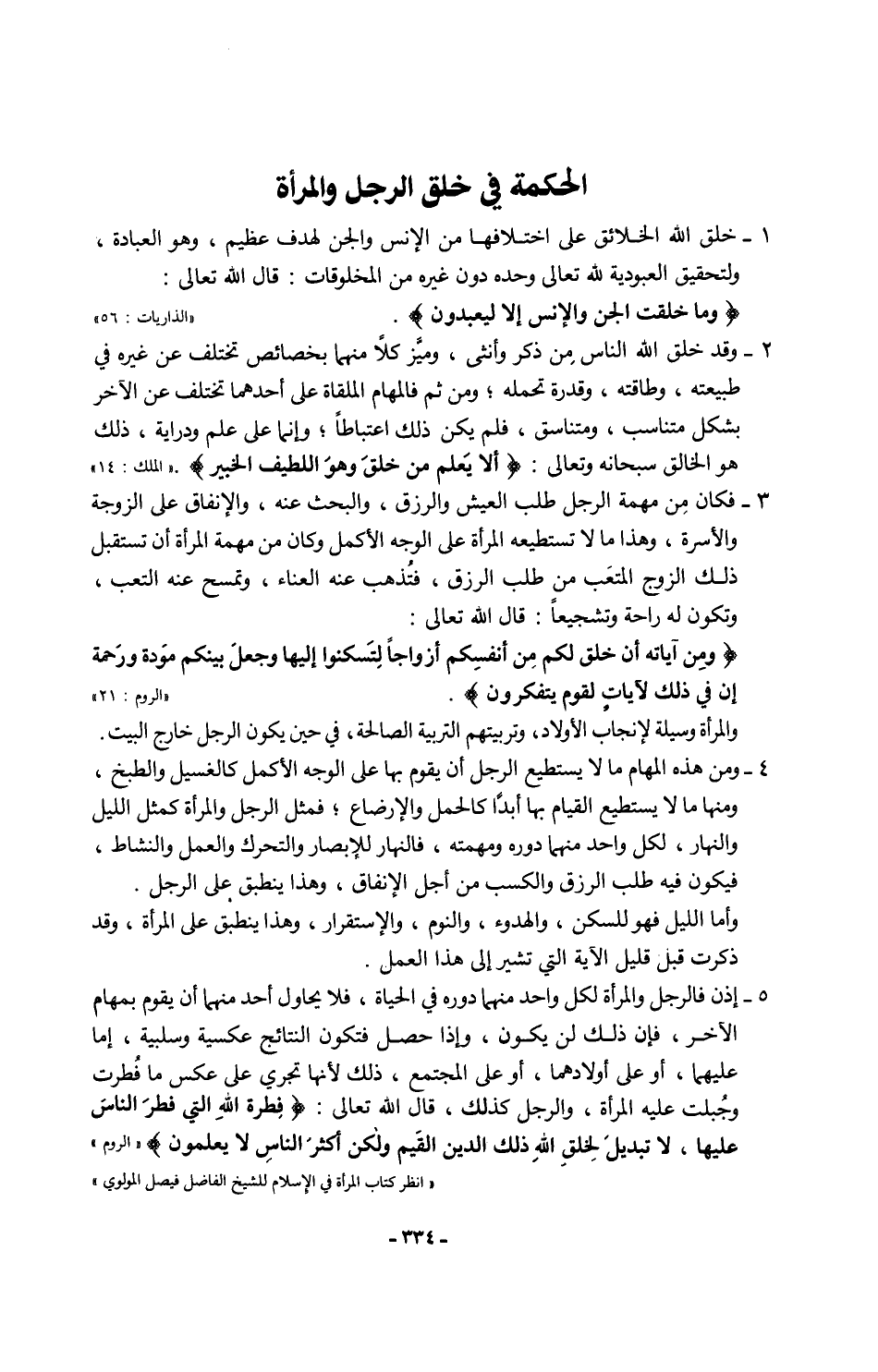 "انظر كتاب المرأة في الإِسلام للشيخ الفاضل فيصل المولوي"