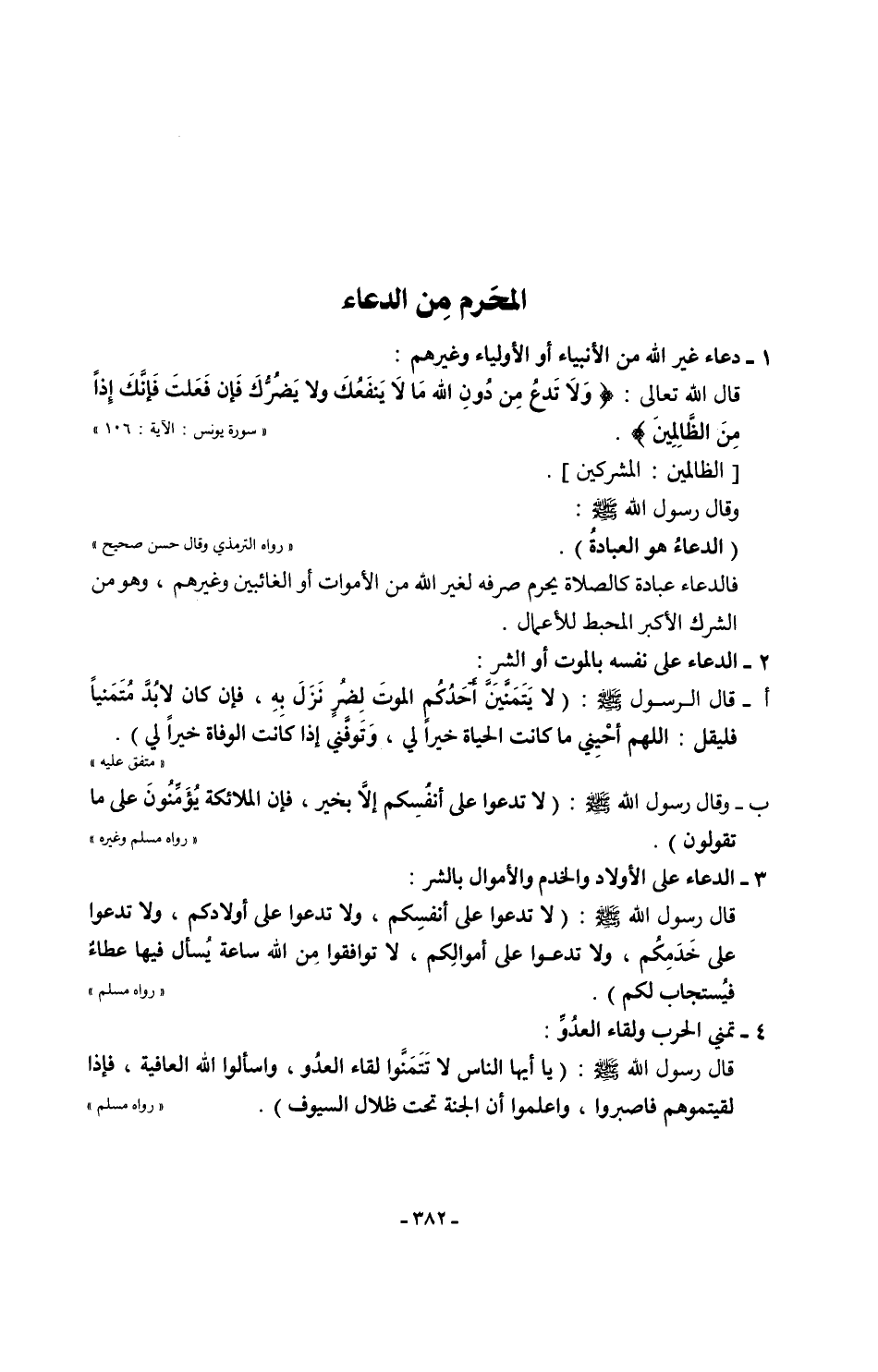 قال الله تعالى: {وَلَا تَدْعُ مِنْ دُونِ اللَّهِ مَا لَا يَنْفَعُكَ وَلَا يَضُرُّكَ فَإِنْ فَعَلْتَ فَإِنَّكَ إِذًا مِنَ الظَّالِمِينَ}. "سورة يونس: الآية: 106"