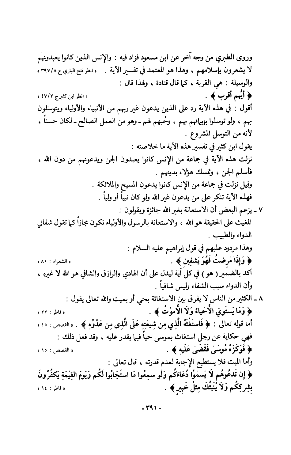 8 - الكثير من الناس لا يفرق بين الاستغاثة بحي أو بميت والله تعالى يقول: