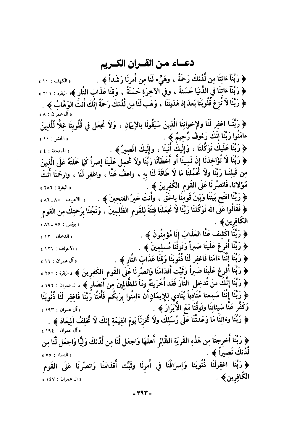{رَبَّنَا لَا تُؤَاخِذْنَا إِنْ نَسِينَا أَوْ أَخْطَأْنَا رَبَّنَا وَلَا تَحْمِلْ عَلَيْنَا إِصْرًا كَمَا حَمَلْتَهُ عَلَى الَّذِينَ مِنْ قَبْلِنَا رَبَّنَا وَلَا تُحَمِّلْنَا مَا لَا طَاقَةَ لَنَا بِهِ وَاعْفُ عَنَّا وَاغْفِرْ لَنَا وَارْحَمْنَا أَنْتَ مَوْلَانَا فَانْصُرْنَا عَلَى الْقَوْمِ الْكَافِرِينَ} "البقرة: 286"
