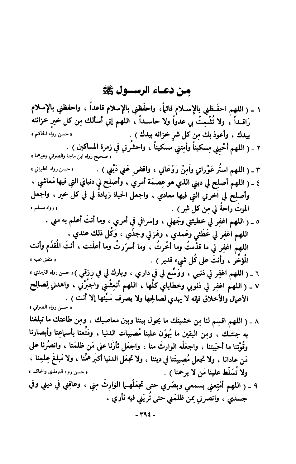 مِن دعاء الرسول - صلى الله عليه وسلم -