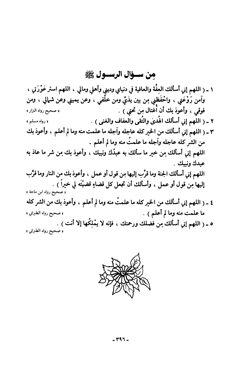 3 - (اللهم إني أسألك من الخير كله عاجله وآجله ما علمت منه وما لم أعلم، وأعوذ بك من الشر كله عاجله وآجله ما علمتُ منه وما لم أعلم.