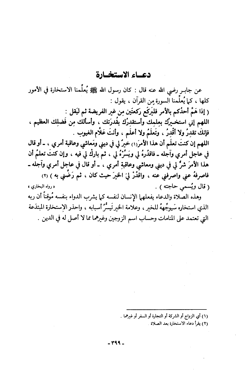 (¬2) يقرأ دعاء الإستخارة بعد الصلاة.