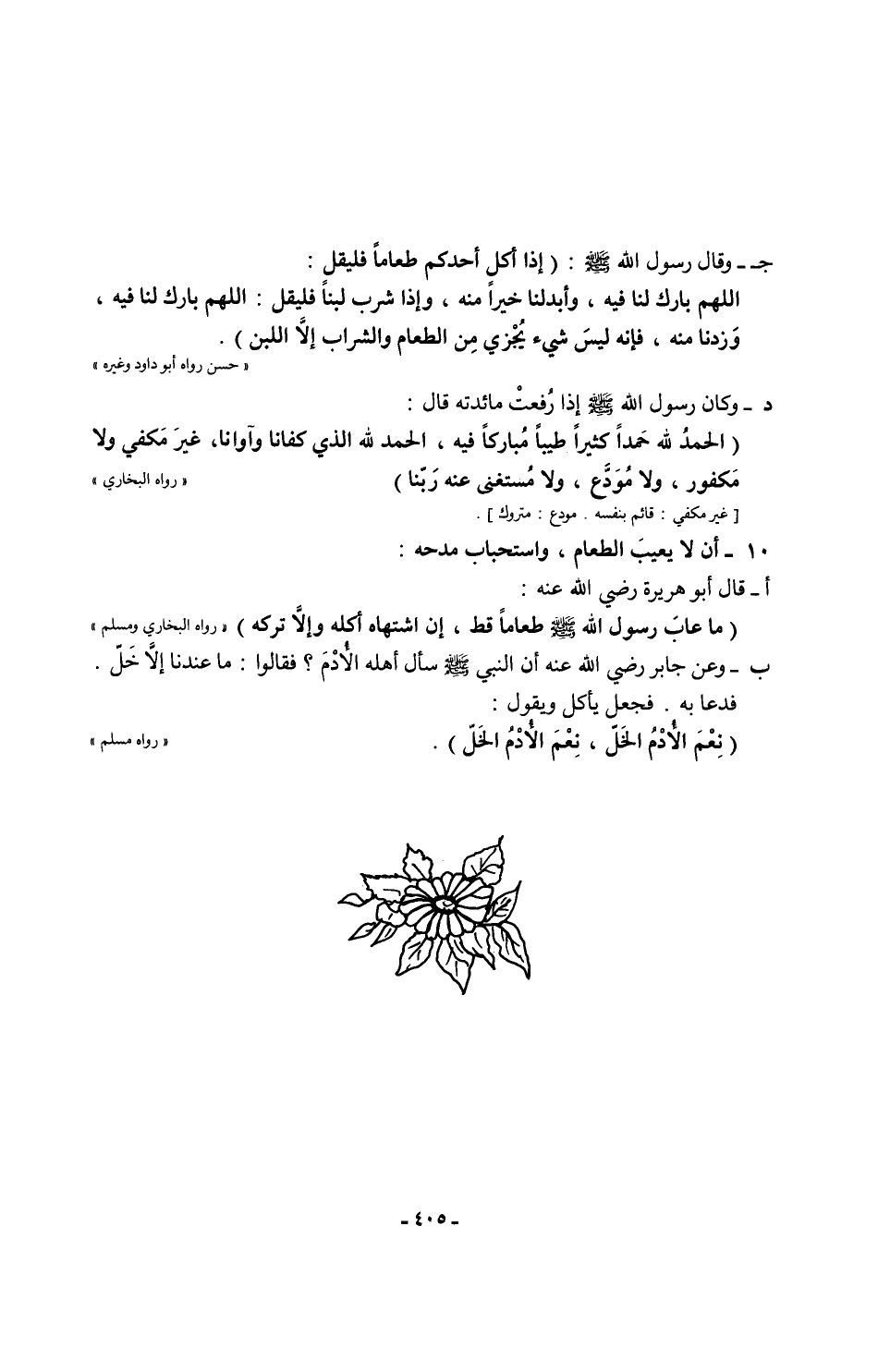 د - وكان رسول الله - صلى الله عليه وسلم - إذا رُفعتْ مائدته قال: