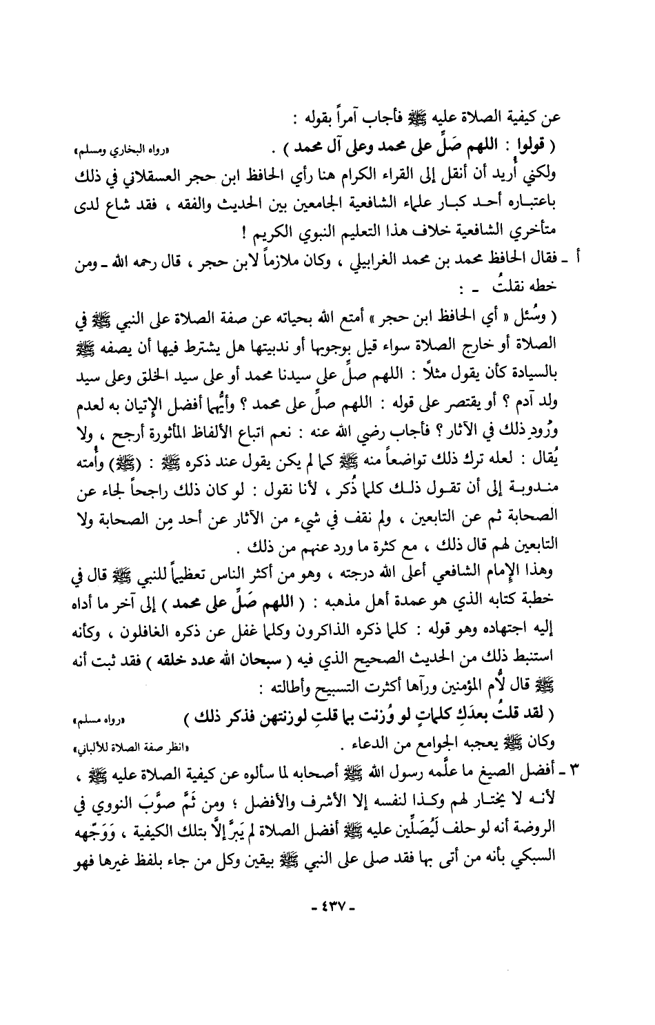 ولكني أُريد أن أنقل إلى القراء الكرام هنا رأي الحافظ ابن حجر العسقلاني في ذلك باعتباره أحد كبار علماء الشافعية الجامعين بين الحديث والفقه، فقد شاع لدى متأخري الشافعية خلاف هذا التعليم النبوي الكريم!