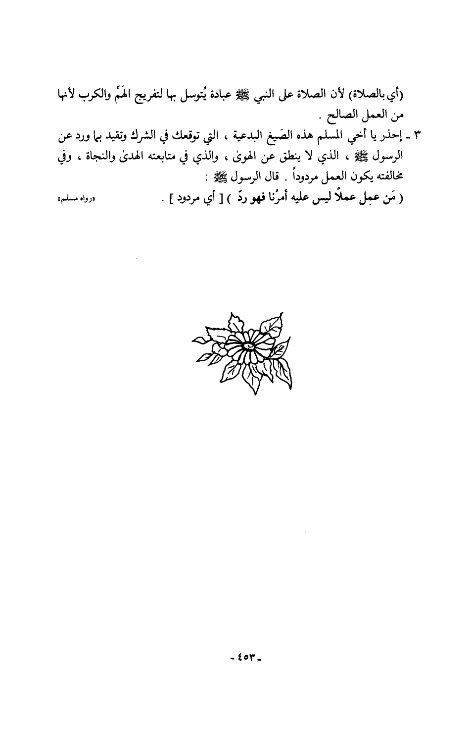 3 - احذر يا أخي المسلم هذه الصَيغ البدعية، التي توقعك في الشرك وتقيد بما ورد عن الرسول - صلى الله عليه وسلم -، الذي لا ينطق عن الهوى، والذي في متابعته الهدى والنجاة، وفي مخالفته يكون العمل مردودًا. قال الرسول - صلى الله عليه وسلم -: