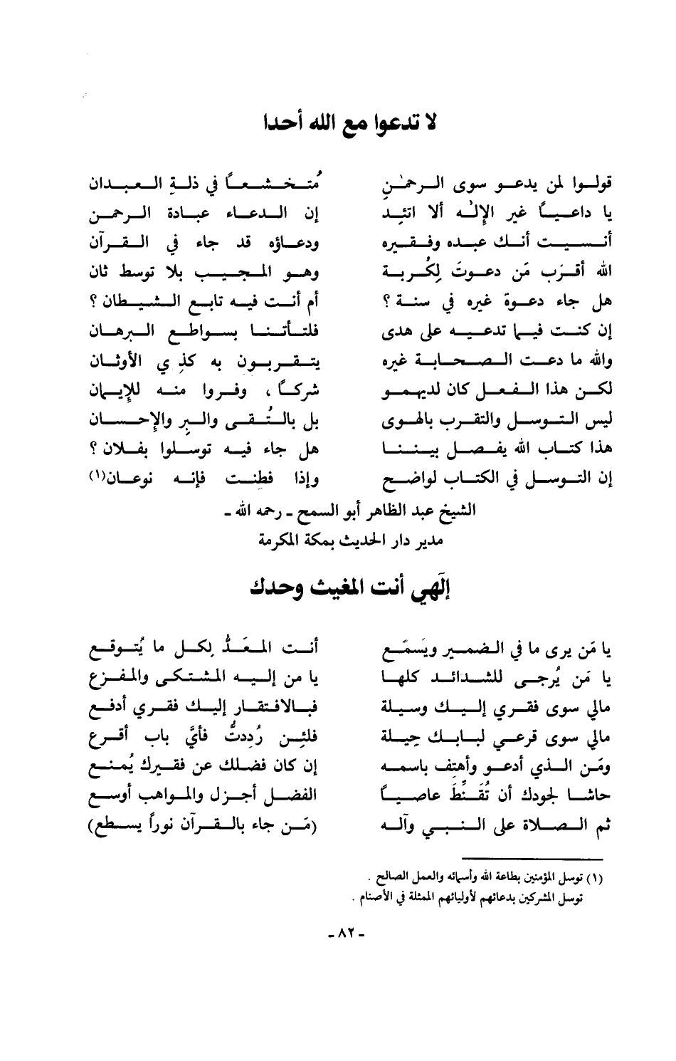 يا داعيًا غير الِإله ألا اتئِد ... إن الدعاء عبادة الرحمن