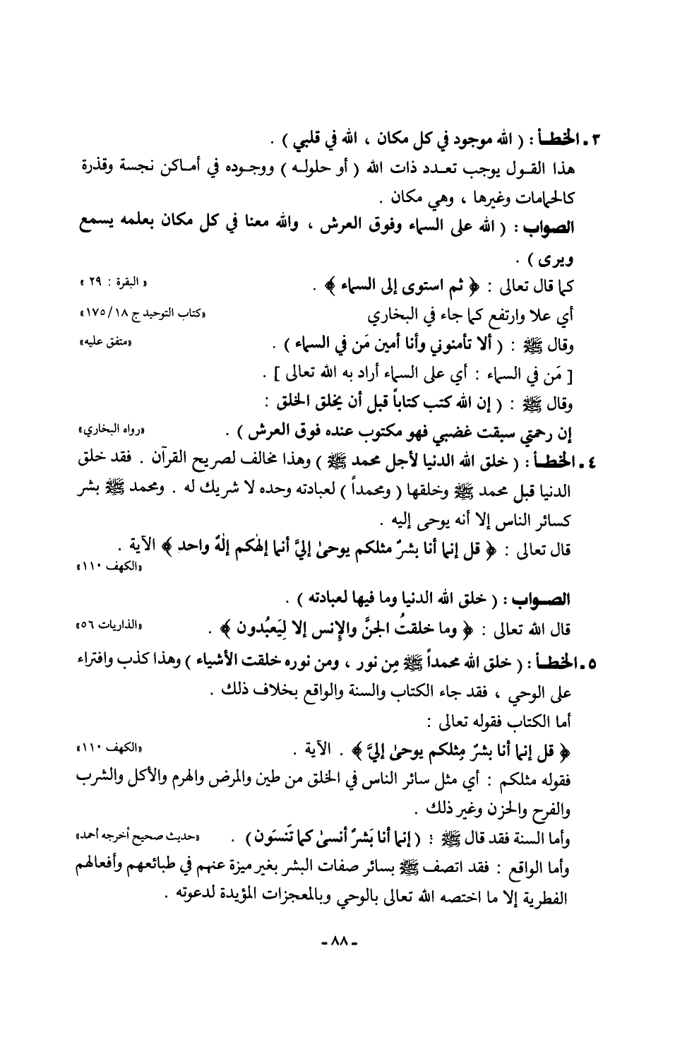 3 - الخطأ: (الله موجود في كل مكان، الله في قلبي).