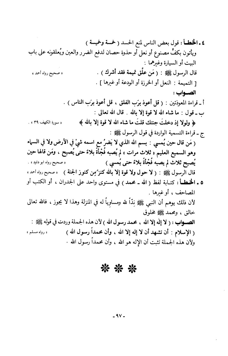 4 - الخطأ: قول بعض الناس لمنع الحسد (خمسة وخميسة)
