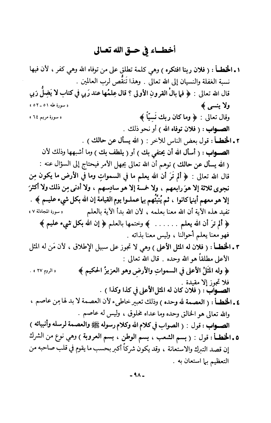 أخطاء في حق الله تعالى