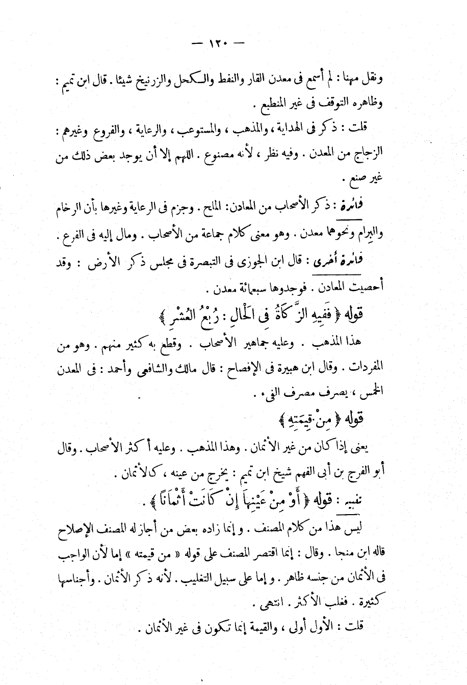 فَائِدَةٌ أُخْرَى: قَالَ ابْنُ الْجَوْزِيِّ فِي التَّبْصِرَةِ فِي مَجْلِسِ ذِكْرِ الْأَرْضِ: وَقَدْ أُحْصِيَتْ الْمَعَادِنُ، فَوَجَدُوهَا سَبْعَمِائَةِ مَعْدِنٍ. قَوْلُهُ (فَفِيهِ الزَّكَاةُ فِي الْحَالِ: رُبُعُ الْعُشْرِ) هَذَا الْمَذْهَبُ، وَعَلَيْهِ جَمَاهِيرُ الْأَصْحَابِ، وَقَطَعَ بِهِ كَثِيرٌ مِنْهُمْ، وَهُوَ مِنْ الْمُفْرَدَاتِ، وَقَالَ ابْنُ هُبَيْرَةَ فِي الْإِفْصَاحِ: قَالَ مَالِكٌ وَالشَّافِعِيُّ وَأَحْمَدُ: فِي الْمَعْدِنِ الْخُمُسُ، يُصْرَفُ مَصْرِفَ الْفَيْءِ.