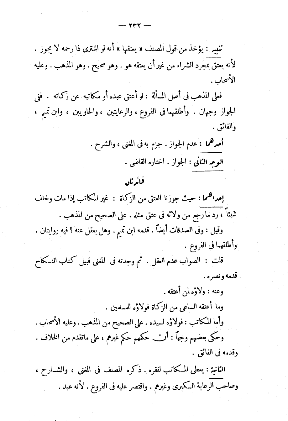 تَنْبِيهٌ: يُؤْخَذُ مِنْ قَوْلِ الْمُصَنِّفِ " يُعْتِقُهَا " أَنَّهُ لَوْ اشْتَرَى ذَا رَحِمِهِ لَا يَجُوزُ؛ لِأَنَّهُ عَتَقَ بِمُجَرَّدِ الشِّرَاءِ مِنْ غَيْرِ أَنْ يُعْتِقَهُ هُوَ، وَهُوَ صَحِيحٌ، وَهُوَ الْمَذْهَبُ، وَعَلَيْهِ الْأَصْحَابُ، فَعَلَى الْمَذْهَبِ فِي أَصْلِ الْمَسْأَلَةِ: لَوْ أَعْتَقَ عَبْدَهُ أَوْ مُكَاتَبَهُ عَنْ زَكَاتِهِ، فَفِي الْجَوَازِ وَجْهَانِ، وَأَطْلَقَهُمَا فِي الْفُرُوعِ، وَالرِّعَايَتَيْنِ، وَالْحَاوِيَيْنِ، وَابْنُ تَمِيمٍ، وَالْفَائِقِ. أَحَدُهُمَا: عَدَمُ الْجَوَازِ، جَزَمَ بِهِ فِي الْمُغْنِي، وَالشَّرْحِ، الْوَجْهُ الثَّانِي: الْجَوَازُ، اخْتَارَهُ الْقَاضِي.