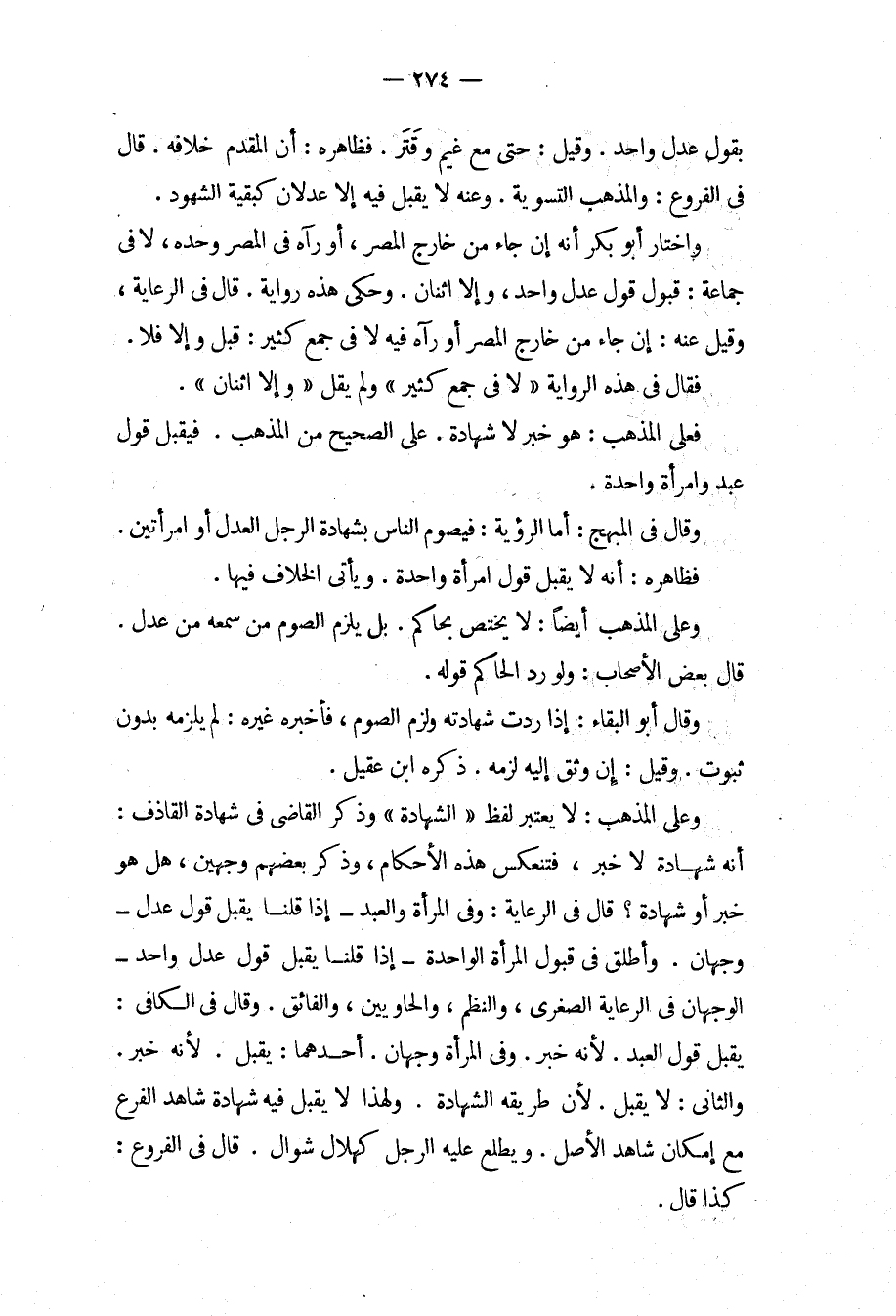 بِقَوْلِ عَدْلٍ وَاحِدٍ، وَقِيلَ: حَتَّى مَعَ غَيْمٍ وَقَتَرٍ، فَظَاهِرُهُ: أَنَّ الْمُقَدَّمَ خِلَافُهُ. قَالَ فِي الْفُرُوعِ: وَالْمَذْهَبُ التَّسْوِيَةُ، وَعَنْهُ لَا يُقْبَلُ فِيهِ إلَّا عَدْلَانِ كَبَقِيَّةِ الشُّهُودِ. وَاخْتَارَ أَبُو بَكْرٍ أَنَّهُ إنْ جَاءَ مِنْ خَارِجِ الْمِصْرِ، أَوْ رَآهُ فِي الْمِصْرِ وَحْدَهُ، لَا فِي جَمَاعَةٍ: قَبُولَ قَوْلِ عَدْلٍ وَاحِدٍ، وَإِلَّا اثْنَانِ، وَحَكَى هَذِهِ رِوَايَةً. قَالَ فِي الرِّعَايَةِ، وَقِيلَ عَنْهُ: إنْ جَاءَ مِنْ خَارِجِ الْمِصْرِ أَوْ رَآهُ فِيهِ لَا فِي جَمْعٍ كَثِيرٍ: قُبِلَ وَإِلَّا فَلَا، فَقَالَ فِي هَذِهِ الرِّوَايَةِ " لَا فِي جَمْعٍ كَثِيرٍ " وَلَمْ يَقُلْ " وَإِلَّا اثْنَانِ "، فَعَلَى الْمَذْهَبِ: هُوَ خَبَرٌ لَا شَهَادَةٌ. عَلَى الصَّحِيحِ مِنْ الْمَذْهَبِ. فَيُقْبَلُ قَوْلُ عَبْدٍ وَامْرَأَةٍ وَاحِدَةٍ، وَقَالَ فِي الْمُبْهِجِ: أَمَّا الرُّؤْيَةُ: فَيَصُومُ النَّاسُ بِشَهَادَةِ الرَّجُلِ الْعَدْلِ أَوْ امْرَأَتَيْنِ، فَظَاهِرُهُ: أَنَّهُ لَا يُقْبَلُ قَوْلُ امْرَأَةٍ وَاحِدَةٍ. وَيَأْتِي الْخِلَافُ فِيهَا، وَعَلَى الْمَذْهَبِ أَيْضًا: لَا يَخْتَصُّ بِحَاكِمٍ. بَلْ يَلْزَمُ الصَّوْمُ مَنْ سَمِعَهُ مِنْ عَدْلٍ. قَالَ بَعْضُ الْأَصْحَابِ: وَلَوْ رَدَّ الْحَاكِمُ قَوْلَهُ، وَقَالَ أَبُو الْبَقَاءِ: إذَا رُدَّتْ شَهَادَتُهُ وَلَزِمَ الصَّوْمُ، فَأَخْبَرَهُ غَيْرُهُ: لَمْ يَلْزَمْهُ بِدُونِ ثُبُوتٍ، وَقِيلَ: إنْ وَثِقَ إلَيْهِ لَزِمَهُ. ذَكَرَهُ ابْنُ عَقِيلٍ، وَعَلَى الْمَذْهَبِ: لَا يُعْتَبَرُ لَفْظُ " الشَّهَادَةِ " وَذَكَرَ الْقَاضِي فِي شَهَادَةِ الْقَاذِفِ: أَنَّهُ شَهَادَةٌ لَا خَبَرٌ، فَتَنْعَكِسُ هَذِهِ الْأَحْكَامُ، وَذَكَرَ بَعْضُهُمْ وَجْهَيْنِ، هَلْ هُوَ خَبَرٌ أَوْ شَهَادَةٌ؟ قَالَ فِي الرِّعَايَةِ: وَفِي الْمَرْأَةِ وَالْعَبْدِ إذَا قُلْنَا يُقْبَلُ قَوْلُ عَدْلٍ وَجْهَانِ، وَأَطْلَقَ فِي قَبُولِ الْمَرْأَةِ الْوَاحِدَةِ إذَا قُلْنَا يُقْبَلُ قَوْلُ عَدْلٍ وَاحِدٍ الْوَجْهَانِ فِي الرِّعَايَةِ الصُّغْرَى، وَالنَّظْمِ، وَالْحَاوِيَيْنِ، وَالْفَائِقِ، وَقَالَ فِي الْكَافِي: يُقْبَلُ قَوْلُ الْعَبْدِ؛ لِأَنَّهُ خَبَرٌ، وَفِي الْمَرْأَةِ وَجْهَانِ. أَحَدُهُمَا: يُقْبَلُ؛ لِأَنَّهُ خَبَرٌ، وَالثَّانِي: لَا يُقْبَلُ؛ لِأَنَّ طَرِيقَهُ الشَّهَادَةُ. وَلِهَذَا لَا يُقْبَلُ فِيهِ شَهَادَةُ شَاهِدِ الْفَرْعِ مَعَ إمْكَانِ شَاهِدِ الْأَصْلِ، وَيَطَّلِعُ عَلَيْهِ الرَّجُلُ كَهِلَالِ شَوَّالٍ. قَالَ فِي الْفُرُوعِ: كَذَا قَالَ