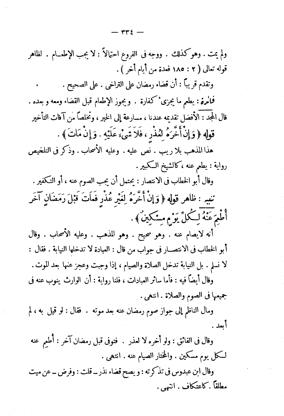 وَلَمْ يَمُتْ، وَهُوَ كَذَلِكَ، وَوَجَّهَ فِي الْفُرُوعِ احْتِمَالًا: لَا يَجِبُ الْإِطْعَامُ؛ لِظَاهِرِ قَوْله تَعَالَى {فَعِدَّةٌ مِنْ أَيَّامٍ أُخَرَ} [البقرة: 184] ، وَتَقَدَّمَ قَرِيبًا: أَنَّ قَضَاءَ رَمَضَانَ عَلَى التَّرَاخِي عَلَى الصَّحِيحِ.