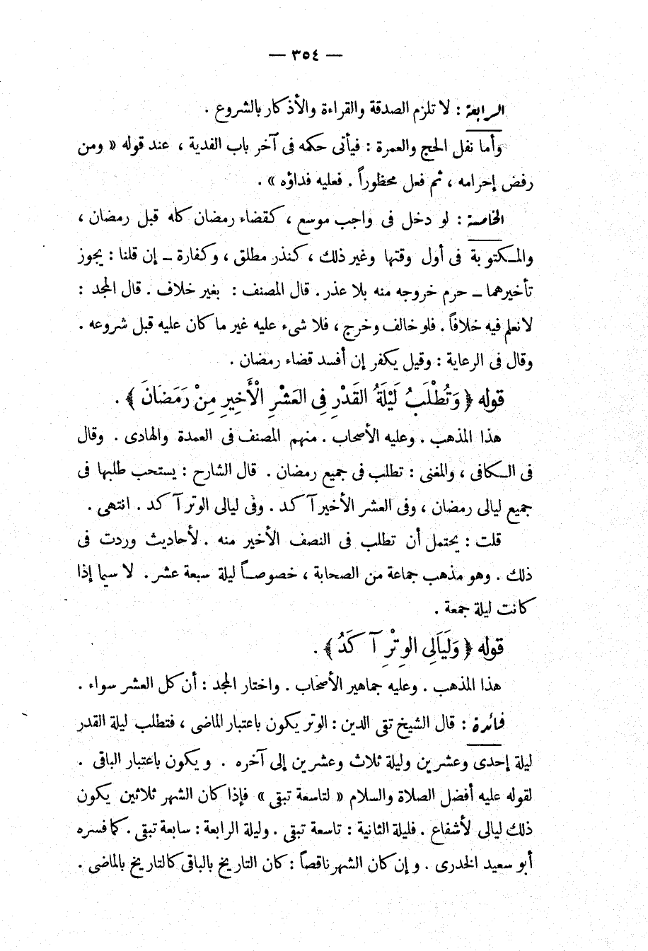 قَوْلُهُ (وَتُطْلَبُ لَيْلَةُ الْقَدْرِ فِي الْعَشْرِ الْأَخِيرِ مِنْ رَمَضَانَ) . هَذَا الْمَذْهَبُ. وَعَلَيْهِ الْأَصْحَابُ. مِنْهُمْ الْمُصَنِّفُ فِي الْعُمْدَةِ وَالْهَادِي، وَقَالَ فِي الْكَافِي، وَالْمُغْنِي: تُطْلَبُ فِي جَمِيعِ رَمَضَانَ. قَالَ الشَّارِحُ: يُسْتَحَبُّ طَلَبُهَا فِي جَمِيعِ لَيَالِي رَمَضَانَ، وَفِي الْعَشْرِ الْأَخِيرِ آكَدُ، وَفِي لَيَالِي الْوَتْرِ آكَدُ. انْتَهَى، قُلْت: يَحْتَمِلُ أَنْ تُطْلَبَ فِي النِّصْفِ الْأَخِيرِ مِنْهُ؛ لِأَحَادِيثَ وَرَدَتْ فِي ذَلِكَ، وَهُوَ مَذْهَبُ جَمَاعَةٍ مِنْ الصَّحَابَةِ، خُصُوصًا لَيْلَةَ سَبْعَةَ عَشَرَ. لَا سِيَّمَا إذَا كَانَتْ لَيْلَةَ جُمُعَةٍ. قَوْلُهُ (وَلَيَالِي الْوَتْرِ آكَدُ) . هَذَا الْمَذْهَبُ، وَعَلَيْهِ جَمَاهِيرُ الْأَصْحَابِ، وَاخْتَارَ الْمَجْدُ: أَنَّ كُلَّ الْعَشْرِ سَوَاءٌ.