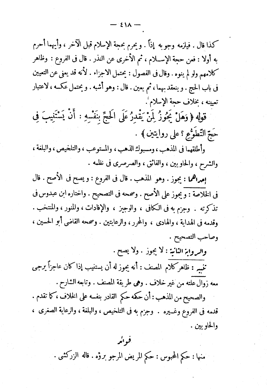 تَنْبِيهٌ: ظَاهِرُ كَلَامِ الْمُصَنِّفِ: أَنَّهُ يَجُوزُ لَهُ أَنْ يَسْتَنِيبَ إذَا كَانَ عَاجِزًا يُرْجَى مَعَهُ زَوَالُ عِلَّتِهِ مِنْ غَيْرِ خِلَافٍ، وَهِيَ طَرِيقَةُ الْمُصَنِّفِ. وَتَابَعَهُ الشَّارِحُ، وَالصَّحِيحُ مِنْ الْمَذْهَبِ: أَنَّ حُكْمَهُ حُكْمُ الْقَادِرِ بِنَفْسِهِ عَلَى الْخِلَافِ، كَمَا تَقَدَّمَ، قَدَّمَهُ فِي الْفُرُوعِ وَغَيْرِهِ، وَجَزَمَ بِهِ فِي التَّلْخِيصِ، وَالْبُلْغَةِ، وَالرِّعَايَةِ الصُّغْرَى، وَالْحَاوِيَيْنِ.