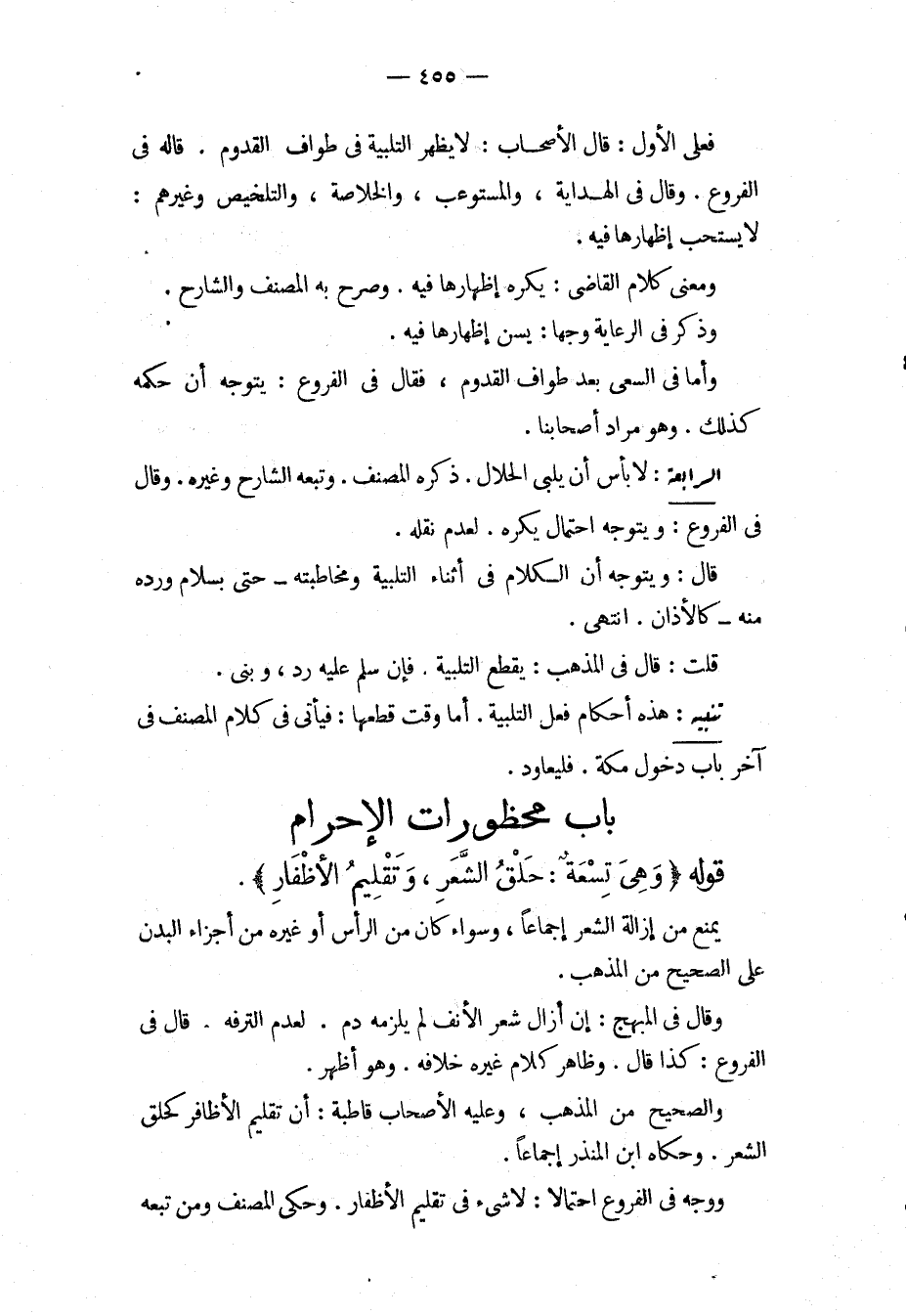 [بَابُ مَحْظُورَاتِ الْإِحْرَامِ]