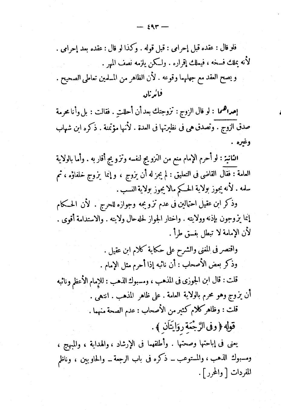 قَوْلُهُ (وَفِي الرَّجْعَةِ رِوَايَتَانِ) . يَعْنِي فِي إبَاحَتِهَا وَصِحَّتِهَا، وَأَطْلَقَهُمَا فِي الْإِرْشَادِ، وَالْهِدَايَةِ، وَالْمُبْهِجِ، وَمَسْبُوكِ الذَّهَبِ، وَالْمُسْتَوْعِبِ ذَكَرَهُ فِي بَابِ الرَّجْعَةِ وَالْحَاوِيَيْنِ، وَنَاظِمِ الْمُفْرَدَاتِ [وَالْمُحَرَّرِ] .
