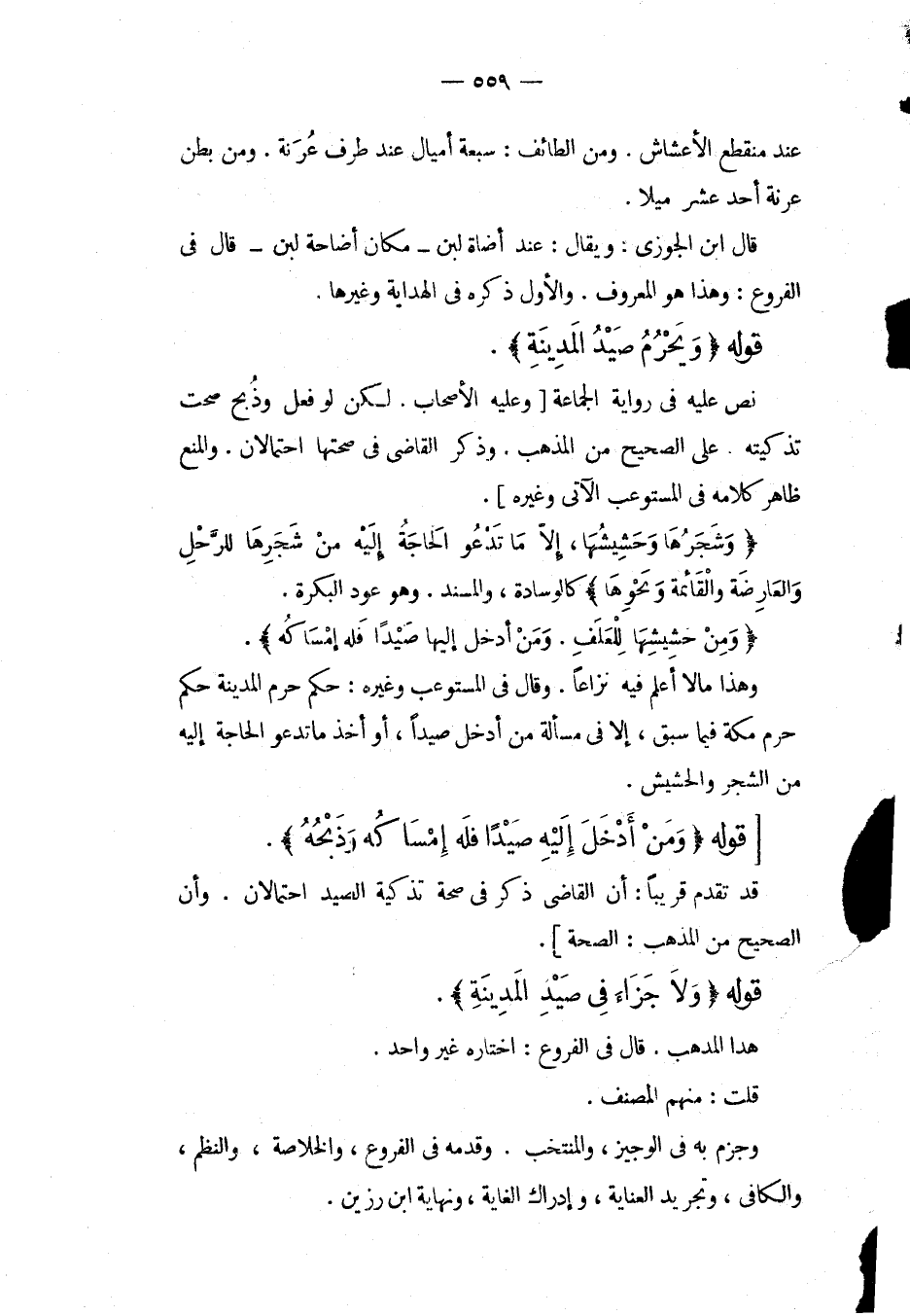قَوْلُهُ (وَلَا جَزَاءَ فِي صَيْدِ الْمَدِينَةِ) . هَذَا الْمَذْهَبُ. قَالَ فِي الْفُرُوعِ: اخْتَارَهُ غَيْرُ وَاحِدٍ. قُلْت: مِنْهُمْ الْمُصَنِّفُ، وَجَزَمَ بِهِ فِي الْوَجِيزِ، وَالْمُنْتَخَبِ، وَقَدَّمَهُ فِي الْفُرُوعِ، وَالْخُلَاصَةِ، وَالنَّظْمِ، وَالْكَافِي، وَتَجْرِيدِ الْعِنَايَةِ، وَإِدْرَاكِ الْغَايَةِ، وَنِهَايَةِ ابْنِ رَزِينٍ.