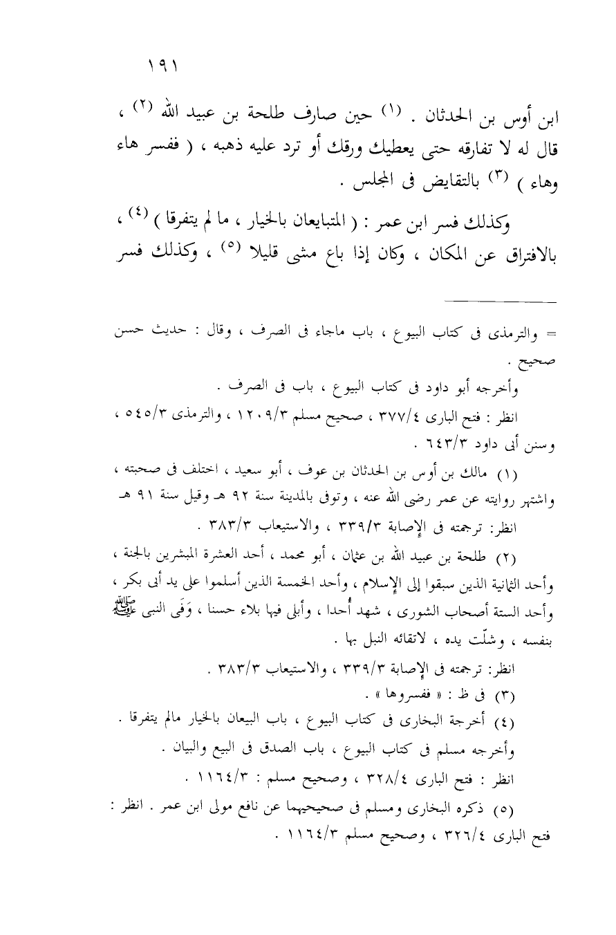 ابن أوس بن الحدثان. حين صارف طلحة بن عبيد الله، قال له لا تفارقه حتى يعطيك ورقك أو ترد عليه ذهبه، (ففسر هاء وهاء) بالتقايض في المجلس.