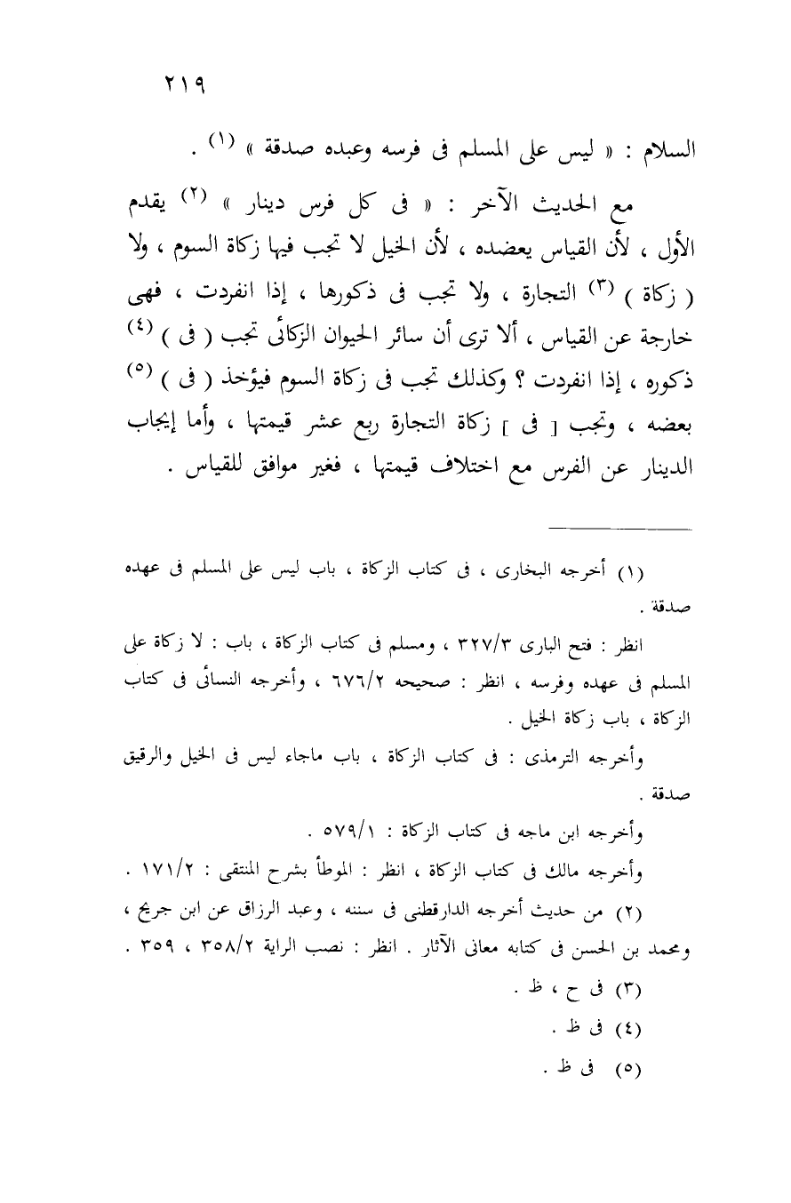 السلام: "ليس على المسلم في فرسه وعبده صدقه".