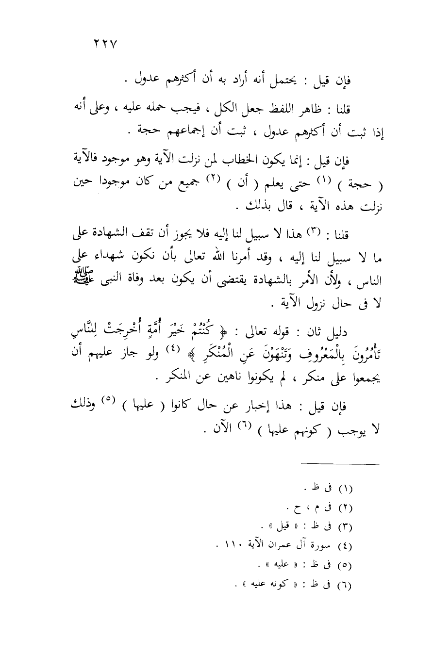 دليل ثان: قوله تعالى: {كُنْتُمْ خَيْرَ أُمَّةٍ أُخْرِجَتْ لِلنَّاسِ تَامُرُونَ بِالْمَعْرُوفِ وَتَنْهَوْنَ عَنْ الْمُنكَرِ} ولو جاز عليهم أن يجمعوا على منكر، لم يكونوا ناهين عن المنكر.