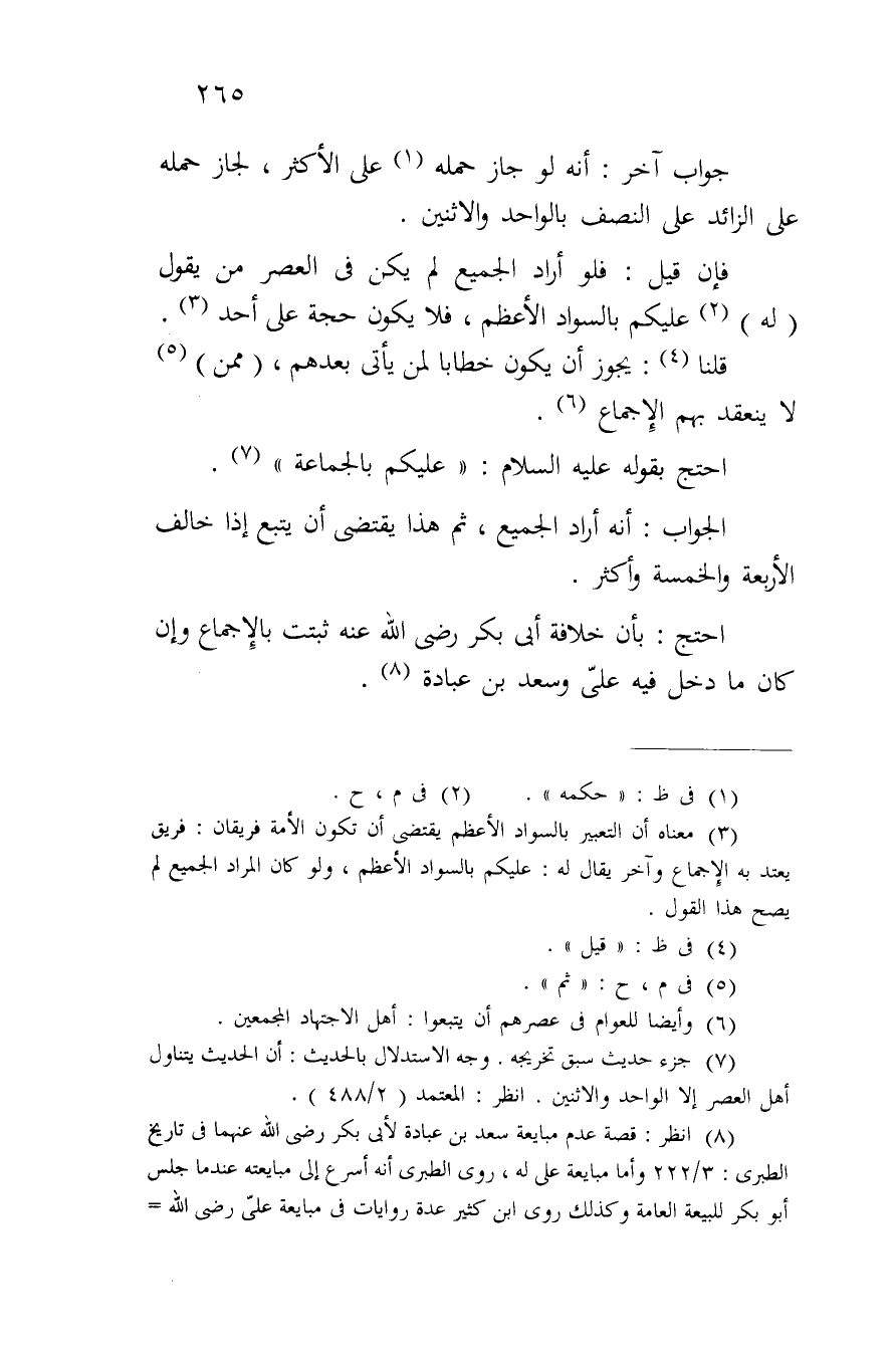 فإن قيل: فلو أراد الجميع لم يكن في العصر من يقول (له) عليكم بالسواد الأعظم، فلا يكون حجة على أحد.