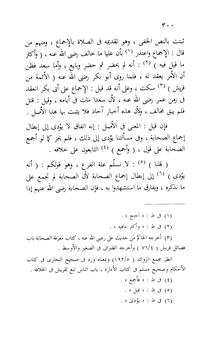 (قلنا): لا نسلم علة الفرع، وهو قولكم: (أنه يؤدي) إلى إبطال إجماع الصحابة لأن الصحابة لم تجمع على ما نذكره، ويفارق ما استشهدوا به، فإن الصحابة رضي الله عنهم إذا