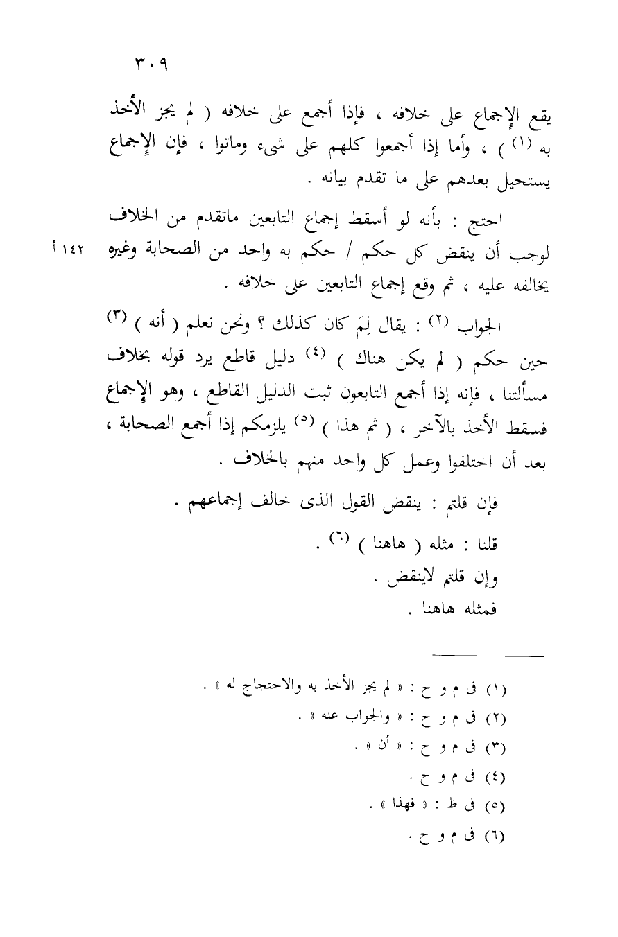 احتج: بأنه لو أسقط إجماع التابعين ما تقدم من الخلاف لوجب أن ينقض كل حكم/ حكم به واحد من الصحابة وغيره يخالفه عليه، ثم وقع إجماع التابعين على خلافه.