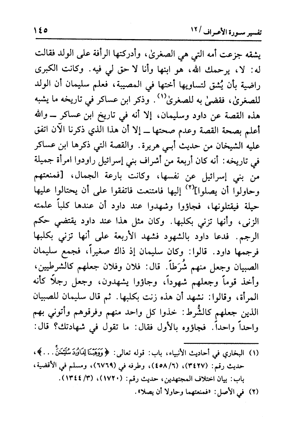 (¬1) البخاري في أحاديث الأنبياء، باب: قوله تعال: {وَوَهَبْنَا لِدَاوُدَ سُلَيْمَانَ ... } حديث رقم (3427)، (6/ 458)، وطرفه في (6769)، ومسلم في الأقضية، باب: بيان اختلاف المجتهدين، حديث رقم (1720)، (3/ 1344).