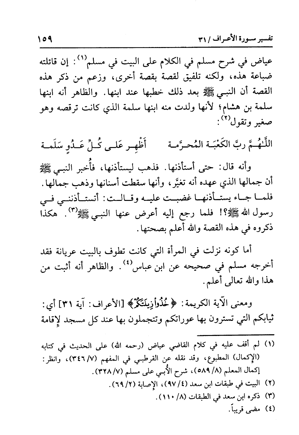 أما كونه نزلت في المرأة التي كانت تطوف بالبيت عريانة فقد أخرجه مسلم في صحيحه عن ابن عباس (¬4)، والظاهر أنه أثبت من هذا، والله تعالى أعلم.