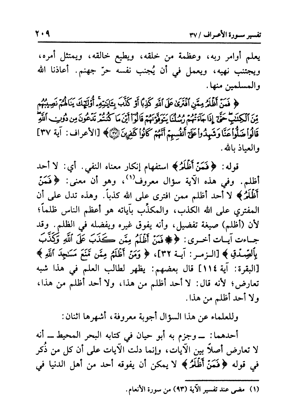 أحدهما، وَجَزَمَ بِهِ أبُو حَيَّان في كتابه البحر المحيط: أنه لا تعارض أصلاً بين الآيات، وإنما دَلَّتِ الآيات على أن كل من ذُكر في قوله: {فَمَنْ أَظلَمُ} لا يمكن أن يفوقه أحد من أهل الدنيا في