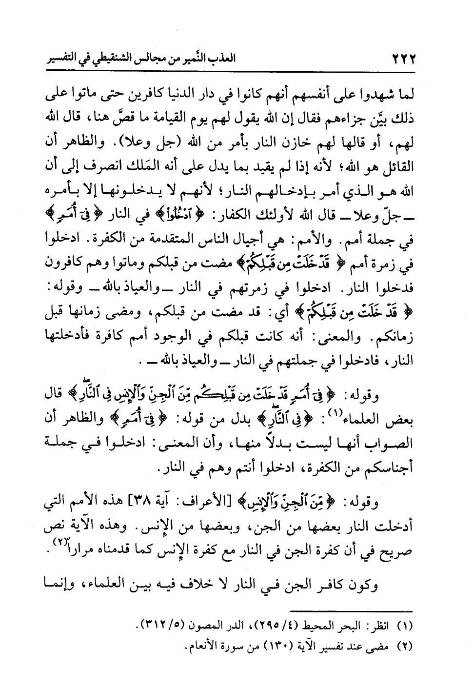 وقوله: {مِّن الْجِنِّ وَالإِنسِ} [الأعراف: آية 38] هذه الأمم التي أدخلت النار بعضها من الجن وبعضها من الإنس، وهذه الآية نص صريح في أن كفرة الجن في النار مع كفرة الإنس كما قدمناه مراراً (¬2).