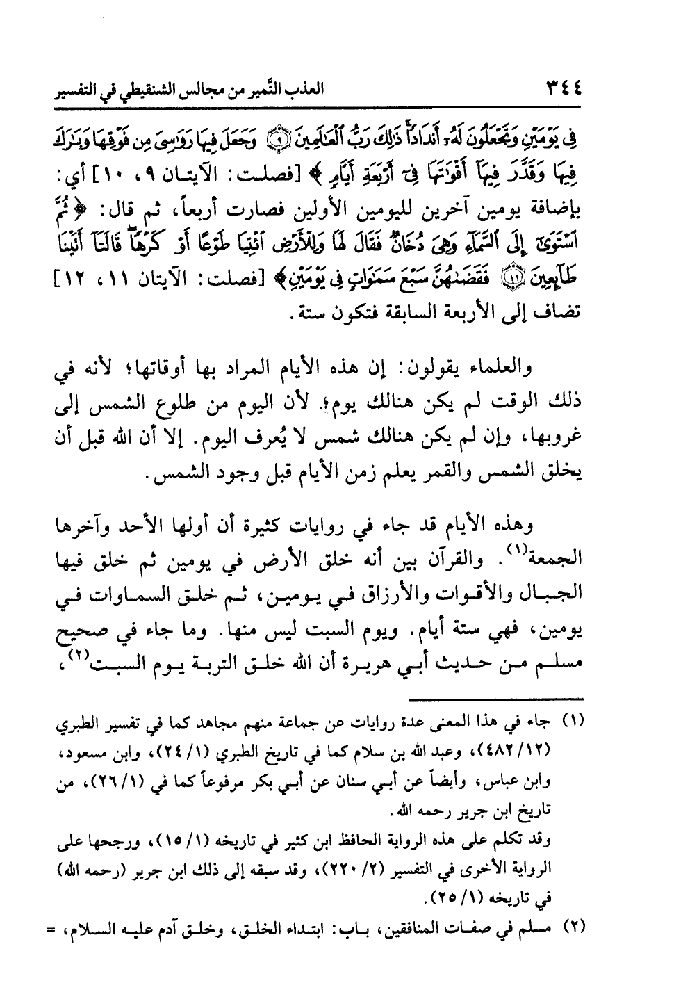(¬2) مسلم في صفات المنافقين. باب: ابتداء الخلق، وخلق آدم عليه السلام. حديث رقم (2789)، (4/ 2149)، وقال الحافظ ابن كثير في تفسيره (2/ 220) معلقًا على هذه الرواية: «وفيه استيعاب الأيام السبعة، والله تعالى قد قال: {فِي سِتَّةِ أَيَّام} ولهذا تكلم البخاري وغير واحد من الحفاظ في هذا الحديث، وجعلوه من رواية أبي هريرة عن كعب الأحبار، ليس مرفوعًا» ا. هـ. وراجع كلام ابن كثير على هذه الرواية في البداية والنهاية (1/ 17).