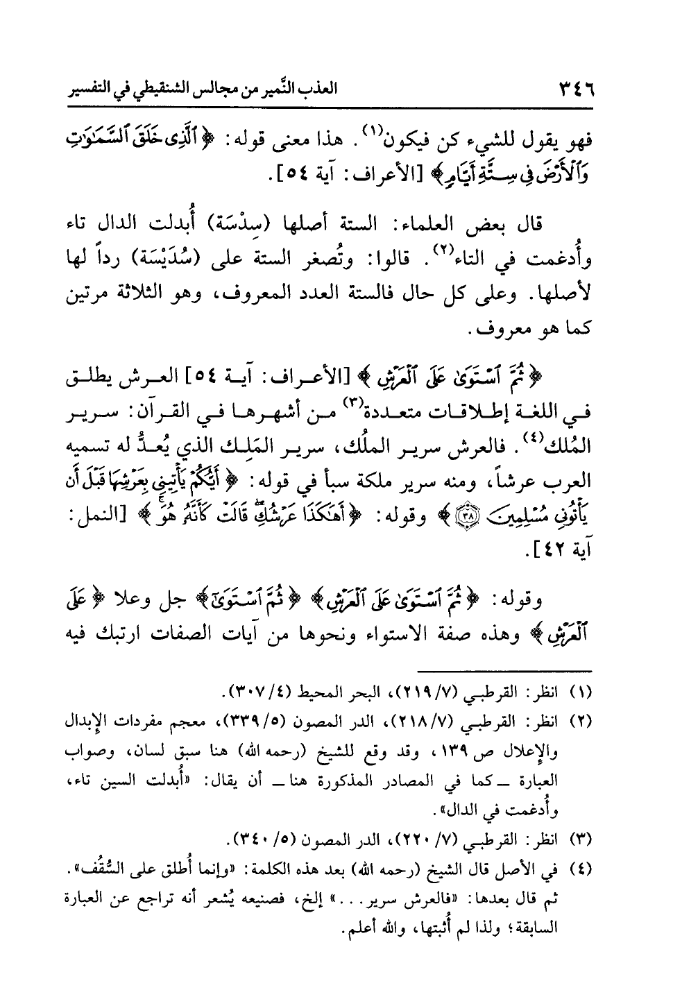 (¬2) انظر: القرطبي (7/ 218)، الدر المصون (5/ 339)، معجم مفردات الإبدال والإعلال ص 139. وقد وقع للشيخ (رحمه الله) هنا سبق لسان، وصواب العبارة - كما في المصادر المذكورة هنا - أن يقال «أُبدلت السين تاء، وأُدغمت في الدال».