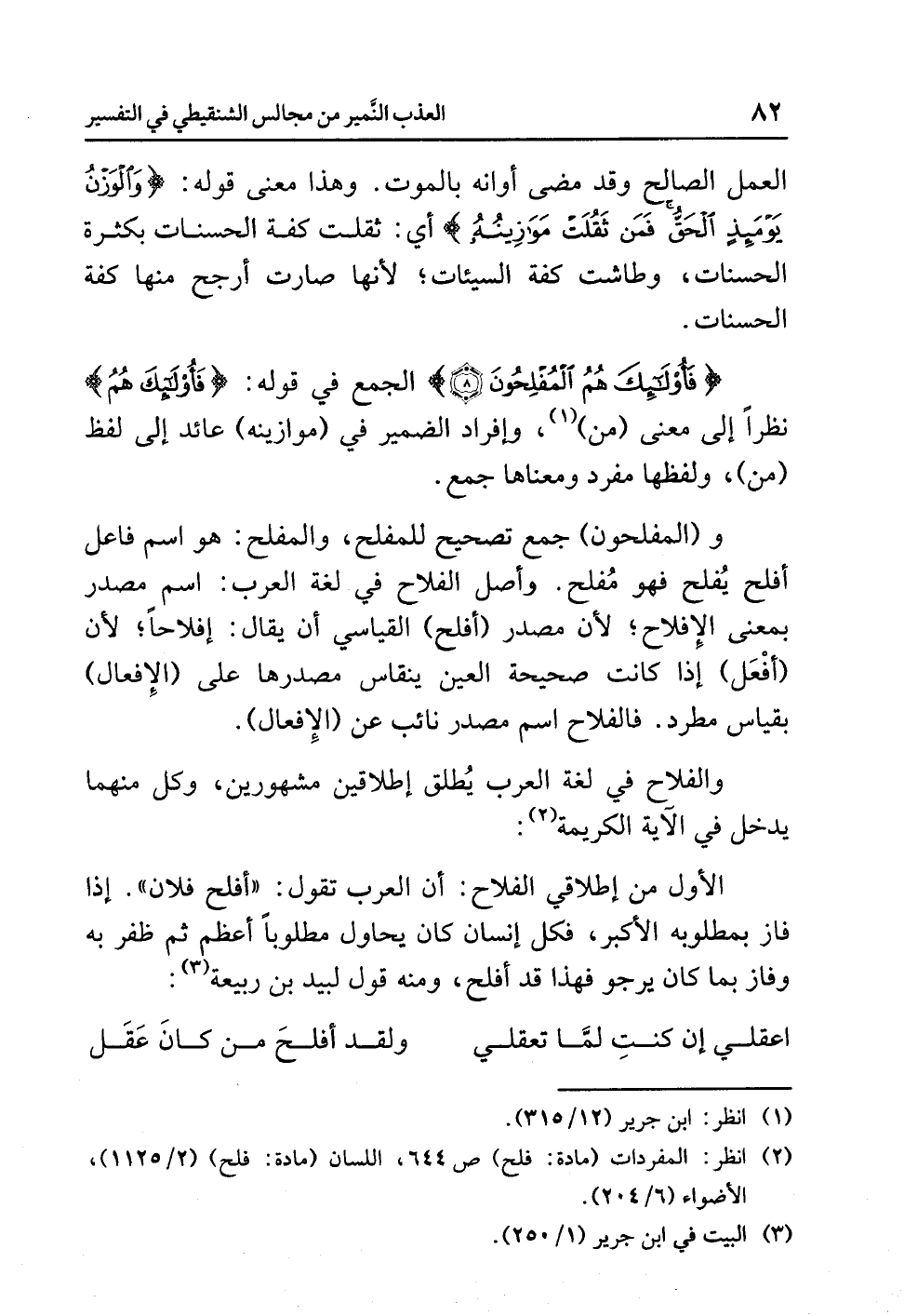 (¬2) انظر: المفردات (مادة: فلح) ص644، اللسان (مادة: فلح) (2/ 1125)، الأضواء (6/ 204).
