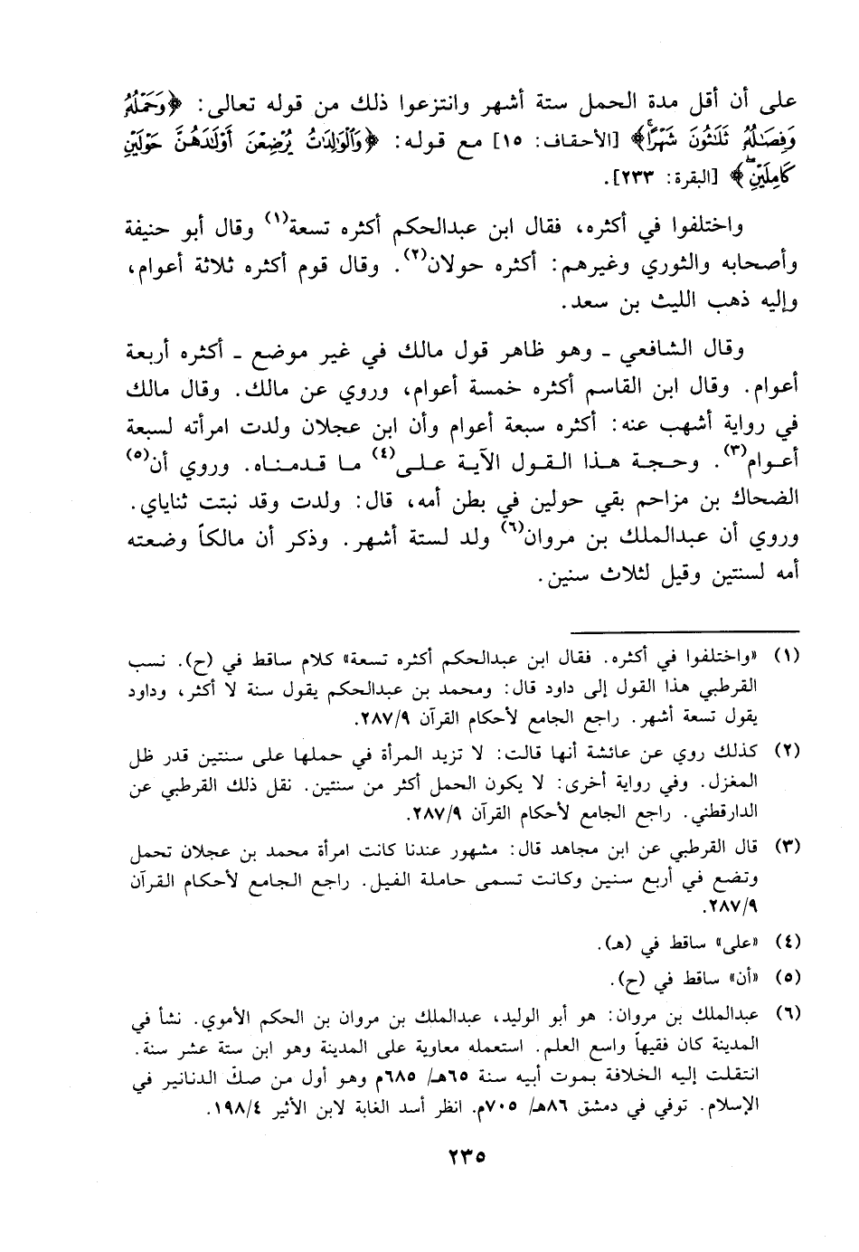 على أن أقل مدة الحمل ستة أشهر وانتزعوا ذلك من قوله تعالى: {وحمله وفصاله ثلاثون شهرًا} [الأحقاف: 15] مع قوله: {والوالدات يرضعن أولادهن حولين كاملين} [البقرة: 233].