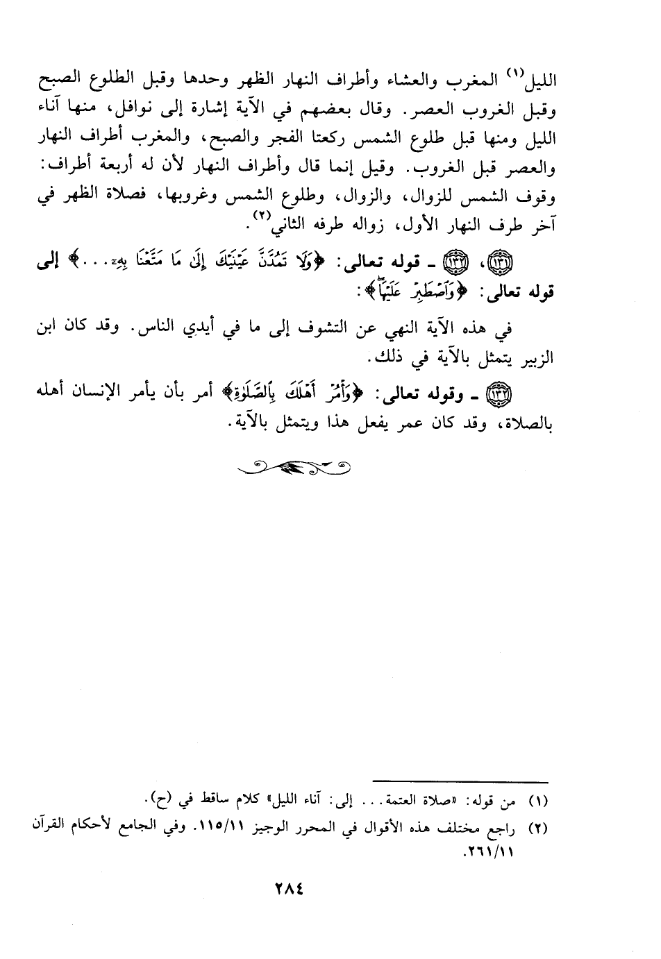 (132) - وقوله تعالى: {وأمر أهلك بالصلاة} أمر بأن يأمر الإنسان أهله بالصلاة، وقد كان عمر يفعل هذا ويتمثل بالآية.