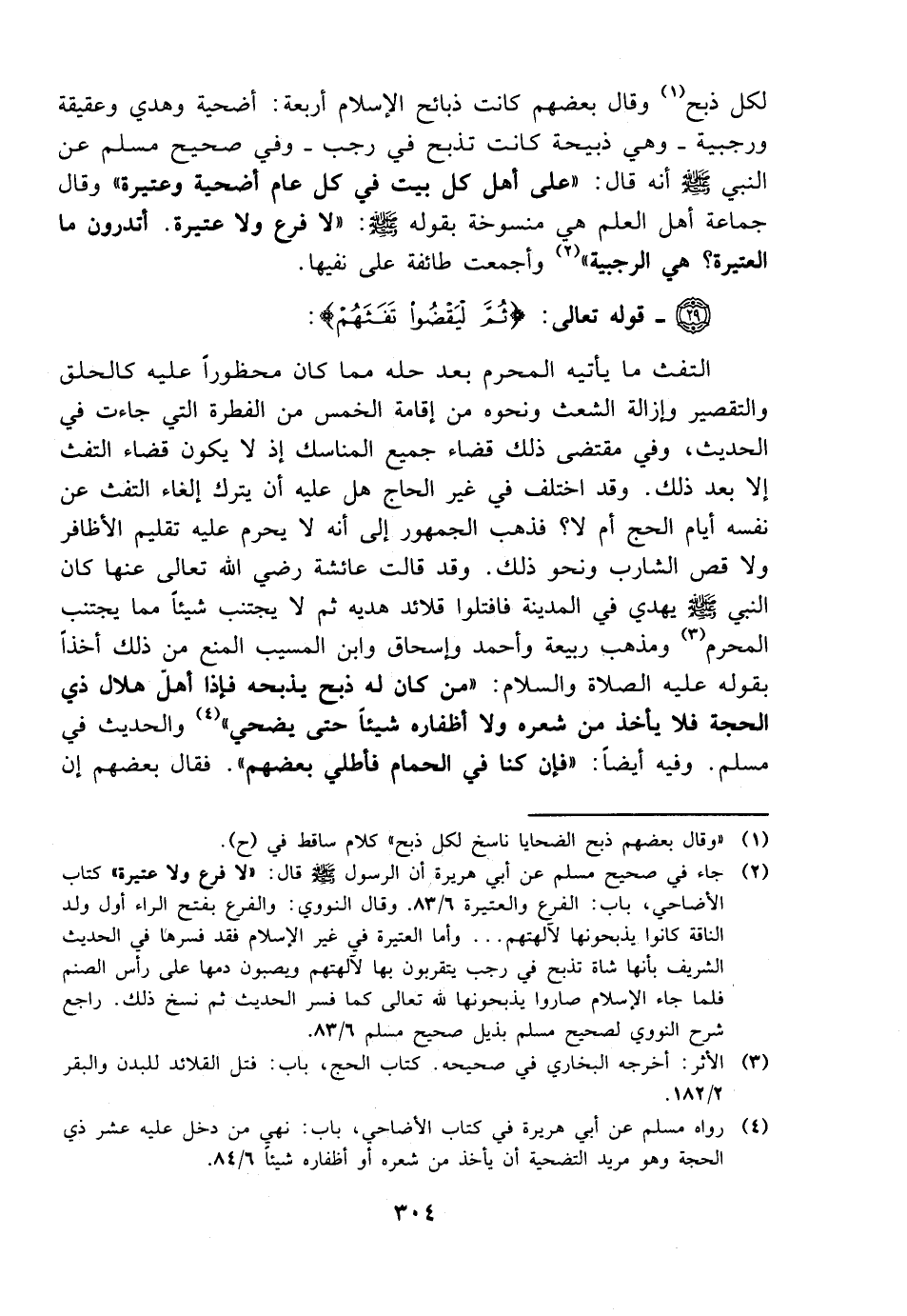 لكل ذبح وقال بعضهم كانت ذبائح الإسلام أربعة: أضحية وهدي وعقيقة ورجبية -وهي ذبيحة كانت تذبح في رجب- وفي صحيح مسل عن النبي صلى الله عليه وسلم أنه قال: ((على أهل كل بيت في كل عام أضحية وعتيرة)) وقال جماعة من أهل العلم هي منسوخة بقوله صلى الله عليه وسلم: ((لا فرع ولا عتيرة. أتدرون ما العتيرة؟ هي الرجبية)) وأجمعت طائفة على نفيها.
