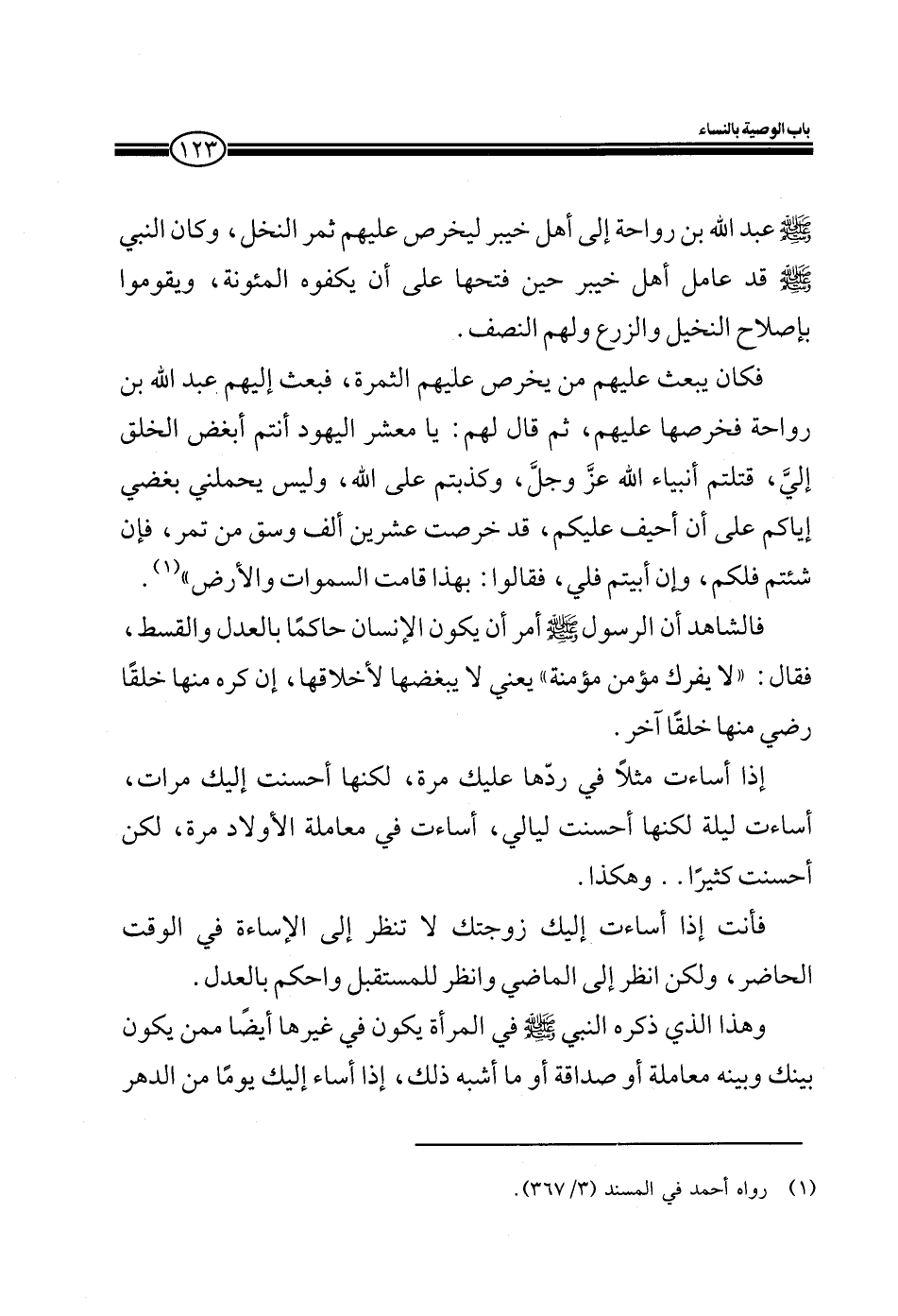 فالشاهد أن الرسول صلى الله عليه وسلم أمر أن يكون الإنسان حاكماً بالعدل والقسط، فقال: ((لا يفرك مؤمن مؤمنة)) يعني لا يبغضها لأخلاقها، إن كره منها خلقاً رضي منه خلقاً آخر.