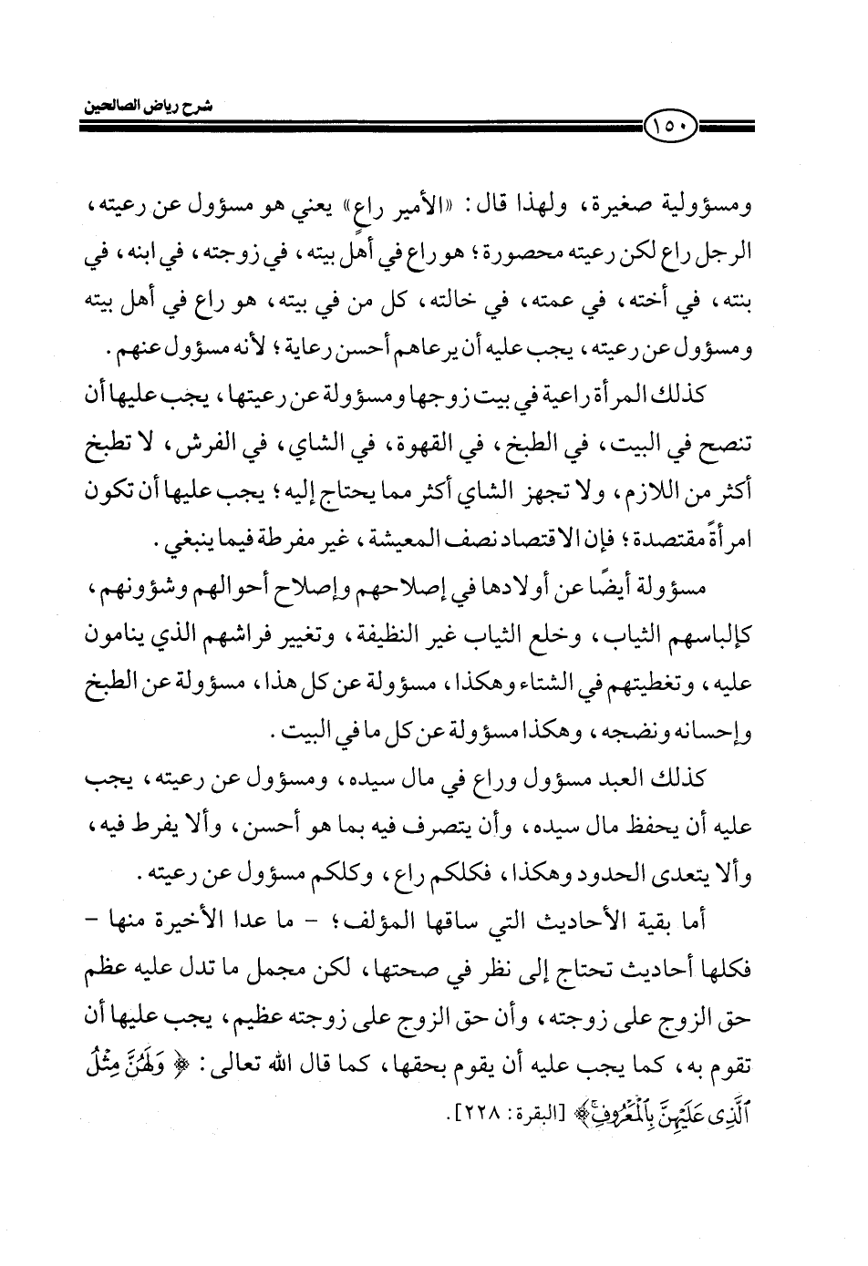 كذلك المرأة راعية في بيت زوجها ومسؤولة عن رعيتها، يجب عليها، يجب أن تنصح في البيت،