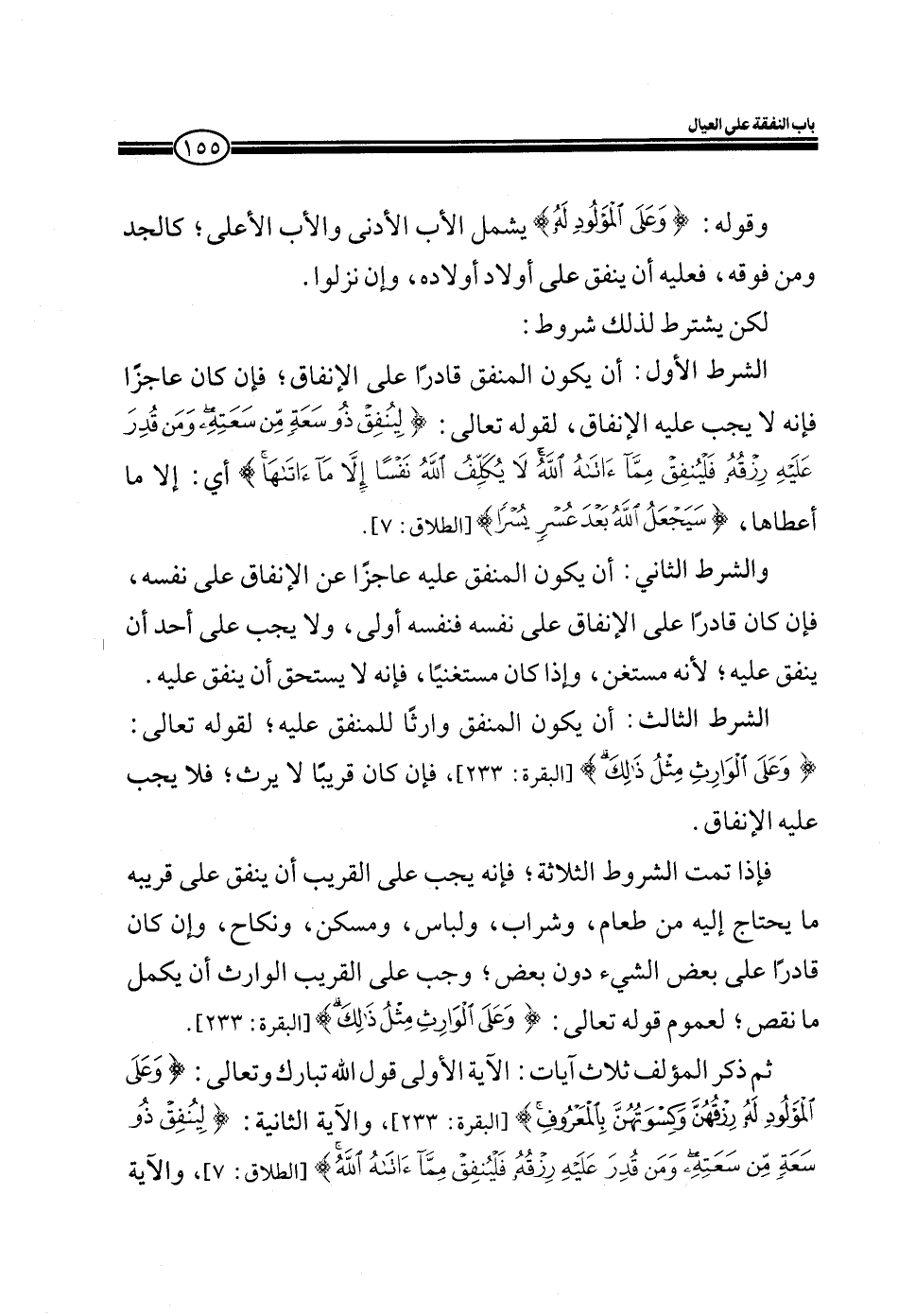 ثم ذكر المؤلف ثلاث آيات: الآية الأولى قول الله تبارك وتعالى: (وَعَلَى الْمَوْلُودِ لَهُ رِزْقُهُنَّ وَكِسْوَتُهُنَّ بِالْمَعْرُوفِ) [البقرة: من الآية233] ، والآية الثانية: (لِيُنْفِقْ ذُو سَعَةٍ مِنْ سَعَتِهِ وَمَنْ قُدِرَ عَلَيْهِ رِزْقُهُ فَلْيُنْفِقْ مِمَّا آتَاهُ
