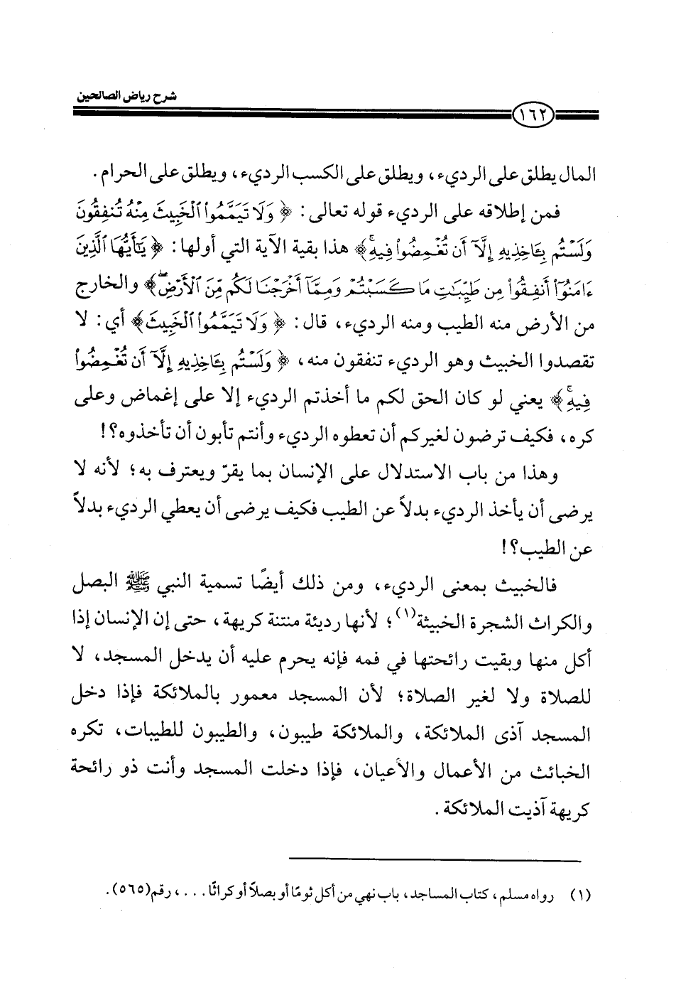 فالخبيث بمعنى الرديء ومن ذلك أيضاً تسمية النبي صلى الله عليه وسلم البصل والكراث الشجرة الخبيثة؛ لأنها رديئة منتنة كريهة، حتى إن الإنسان إذا أكل منها وبقيت رائحتها في فمه فإنه يحرم عليه أن يدخل المسجد، لا للصلاة ولا لغير الصلاة؛ لأن المسجد معمور بالملائكة فإذا دخل المسجد آذى الملائكة، والملائكة طيبون، والطيبون للطيبات، تكره الخبائث من الأعمال والأعيان، فإذا دخلت المسجد وأنت ذو رائحة كريهة آذيت الملائكة.