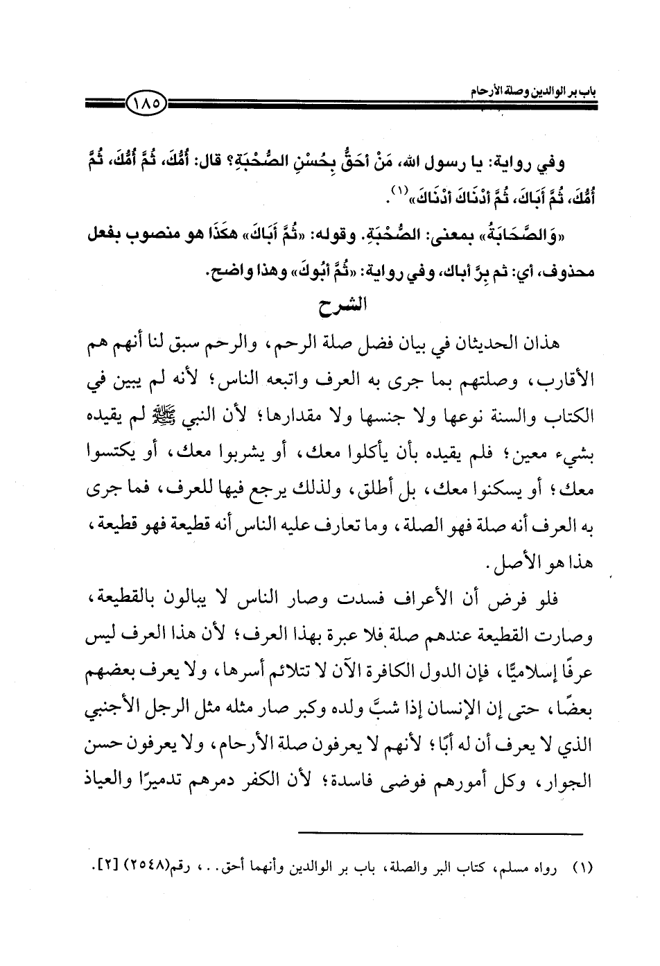 ((والصحابة)) بمعنى: الصحبة. وقوله: ((ثم أباك)) هكذا منصوب بفعل محذوف، أي: ثم برأباك، وفي رواية ((ثم أبوك)) وهذا واضح.