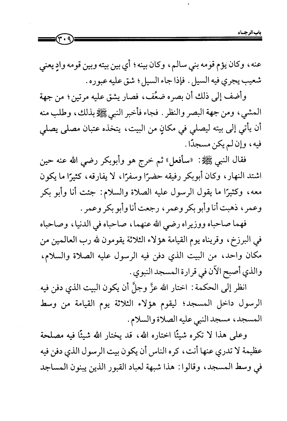 انظر إلى الحكمة: اختار الله عز وجل أن يكون البيت الذي دفن فيه الرسول داخل المسجد؛ ليقوم هؤلاء الثلاثة يوم القيامة من وسط المسجد، مسجد النبي عليه والصلاة والسلام.