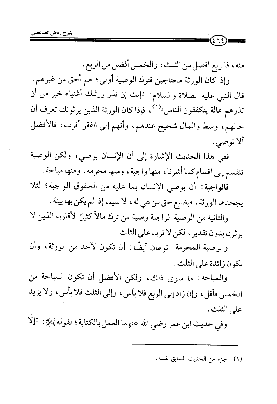 ففي هذا الحديث الإشارة إلى أن الإنسان يوصي، ولكن الوصية تنقسم إلى أٌقسام كما أشرنا، منها واجبة، ومنها محرمة، ومنها مباحة.