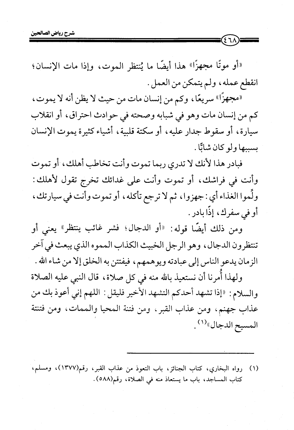 فبادر هذا لأنك لا تدري ربما تموت وأنت تخاطب أهلك، أو تموت وأنت في فراشك، أو تموت وأنت على غدائك تخرج تقول لأهلك: ولّموا الغذاء أي: جهزوا، ثم لا ترجع تأكله، أو تموت وأنت في سيارتك، أو في سفرك، إذاً بادر.