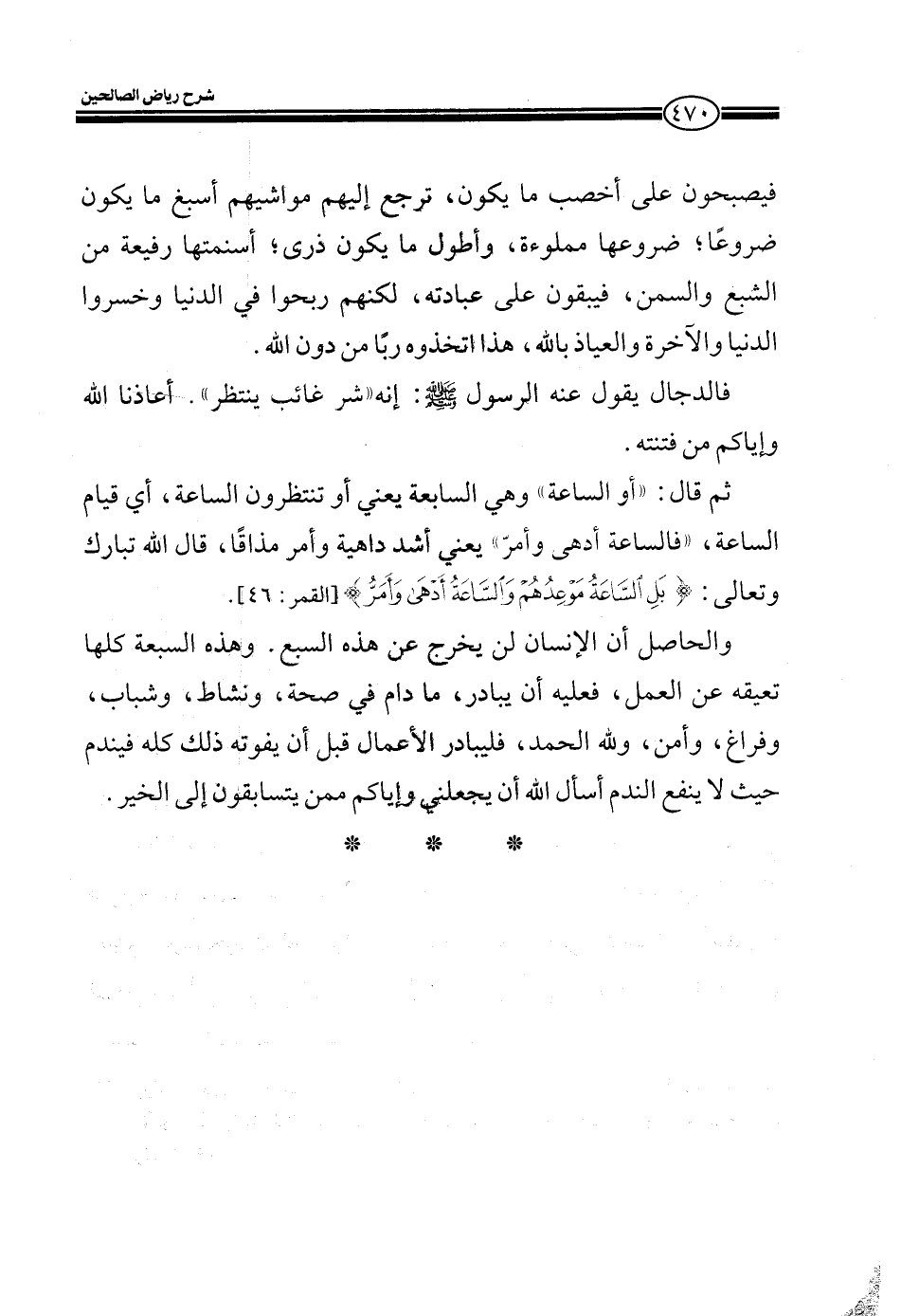 ثم قال: ((أو الساعة ")) وهي السابعة يعني أو تنتظرون الساعة، إي قيام الساعة، ((فالساعة أدهى وأمرّ")) يعني أشد داهية وأمر مذاقاً، قال الله تبارك وتعالى: (بَلِ السَّاعَةُ مَوْعِدُهُمْ وَالسَّاعَةُ أَدْهَى وَأَمَرُّ) (القمر: 46) .