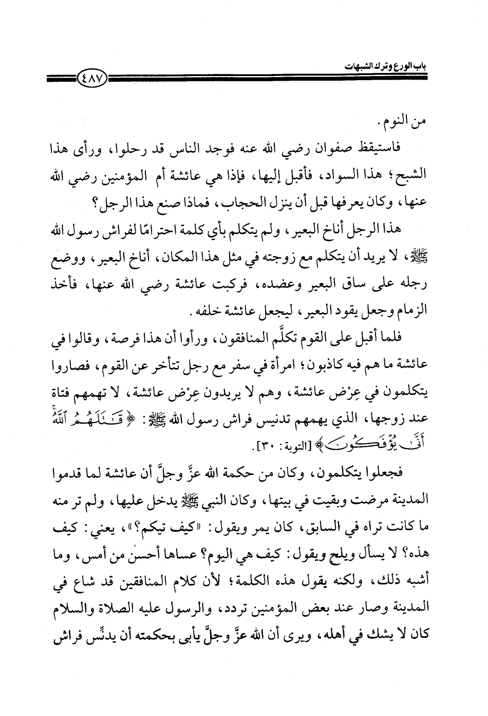 فلما أقبل على القوم تكلَّم المنافقون، ورأوا أن هذه فرصة، وقالوا في عائشة ما هم فيه كاذبون؛ امرأة في سفر مع رجل تتأخر عن القوم، فصاروا يتكلمون في عِرض عائشة، وهم لا يريدون عِرض عائشة، ولا تهمهم فتاة عند زوجها، الذي يهمهم تدنيس فراش رسول الله صلى الله عليه وسلم (قَاتَلَهُمُ اللَّهُ أَنَّى يُؤْفَكُونَ) (التوبة: 30) .
